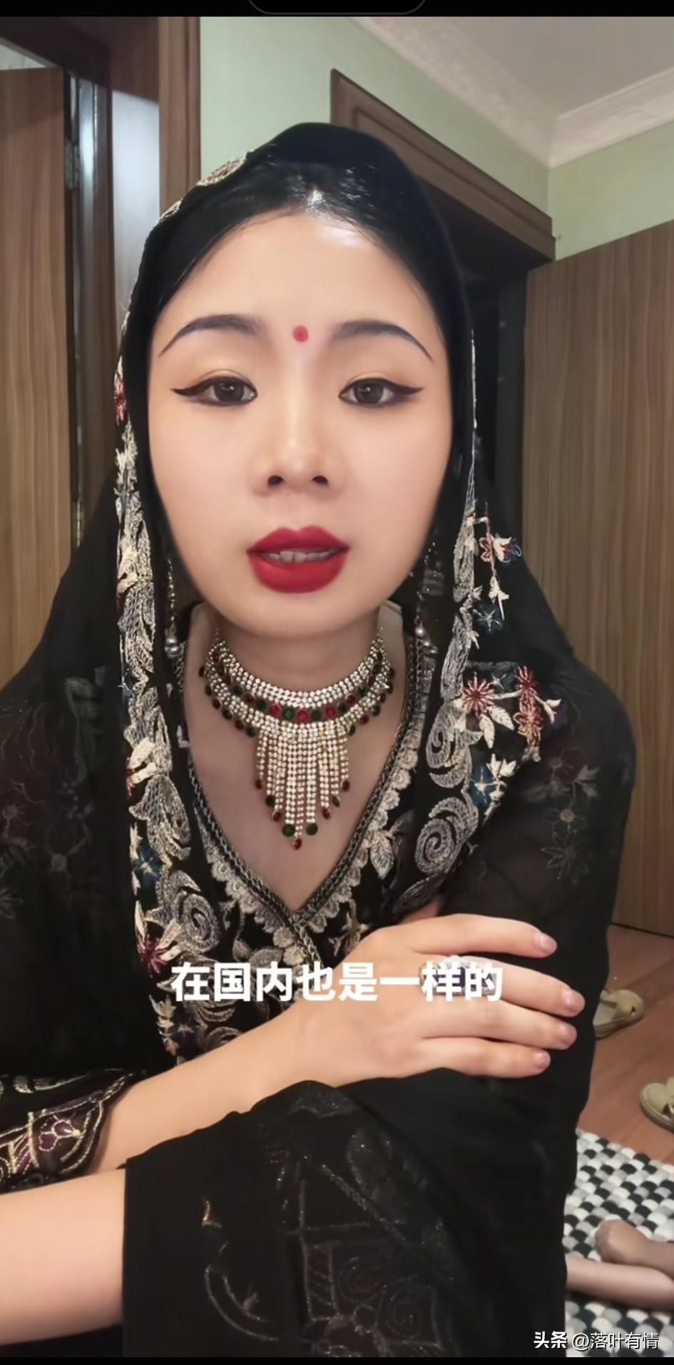 贵州女子嫁给了印度人, 当有人说印度女人不能出门, 因为印度非常的不安全, 作为在印度生活了六七年的女人, 她跳出来为印度反驳, 她说自己在那里生活了六七年, 也没有觉得印度不安全, 白天去哪里都行, 就像在国内一样, 至于说安不安全? 就看你有没有做好防范意识, 在国内哪里也一样, 如果没有做好安全防范意识, 女孩子也是不安全的, 她觉得印度挺好的, 毕竟她已经在印度定居了, 每天穿着印度的传统服装, 在网上分享自己的印度生活, 也不知道什么人关注她, 大家觉得她为什么嫁给印度人呢?