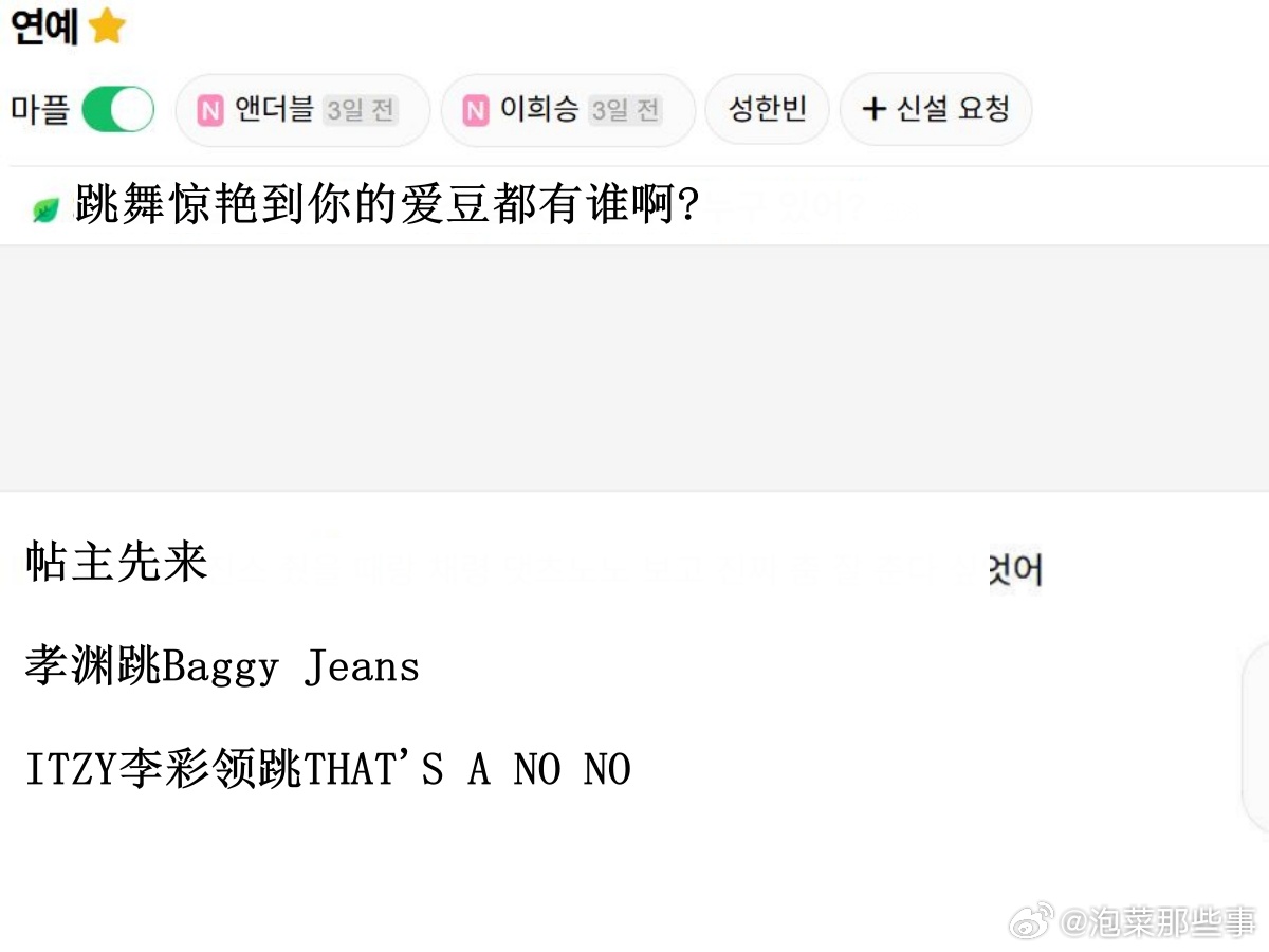 🔥韩网热帖评论翻译🔥跳舞惊艳到你的爱豆有谁啊?韩网原帖帖主发问:跳舞惊艳到你的爱豆有谁啊? 帖主先来 孝渊跳Baggy Jeans ITZY李彩领跳THAT'S A NO NOcr.instiz