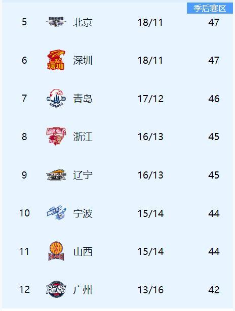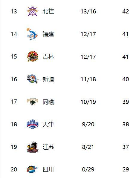 CBA第29轮比赛今晚全部结束,焦点战上海队三杀广东队,吉林队2分击败北京北汽队,广州队1分击败山西队,北控队加时战胜浙江稠州队,辽宁队落后15分逆转南京同曦队,福建队86:77战胜青岛队,宁波主场大胜新疆队,四场队难求一胜,单赛季29连负已经创造CBA新的记录。 本轮比赛精彩纷呈同时也冷门迭爆,积分榜也随着各队胜负发生变化,上海队和广厦队继续稳固前两名。广东队成绩和山东队持平,分列第三和第四,北京北汽和深圳队战绩持平,分列第五和第六,青岛队17胜排名第七,浙江稠州和辽宁队都是16胜排名第八和第九。宁波和山西队都是15胜排名第十和第十一,广州队13胜排名第十二。 北控、福建、吉林、新疆、同曦分列十三到十七名,也都还有进入季后赛机会。
