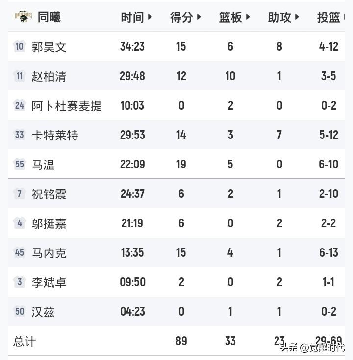 赵继伟11+11 辽宁92-89同曦 郭昊文15+8