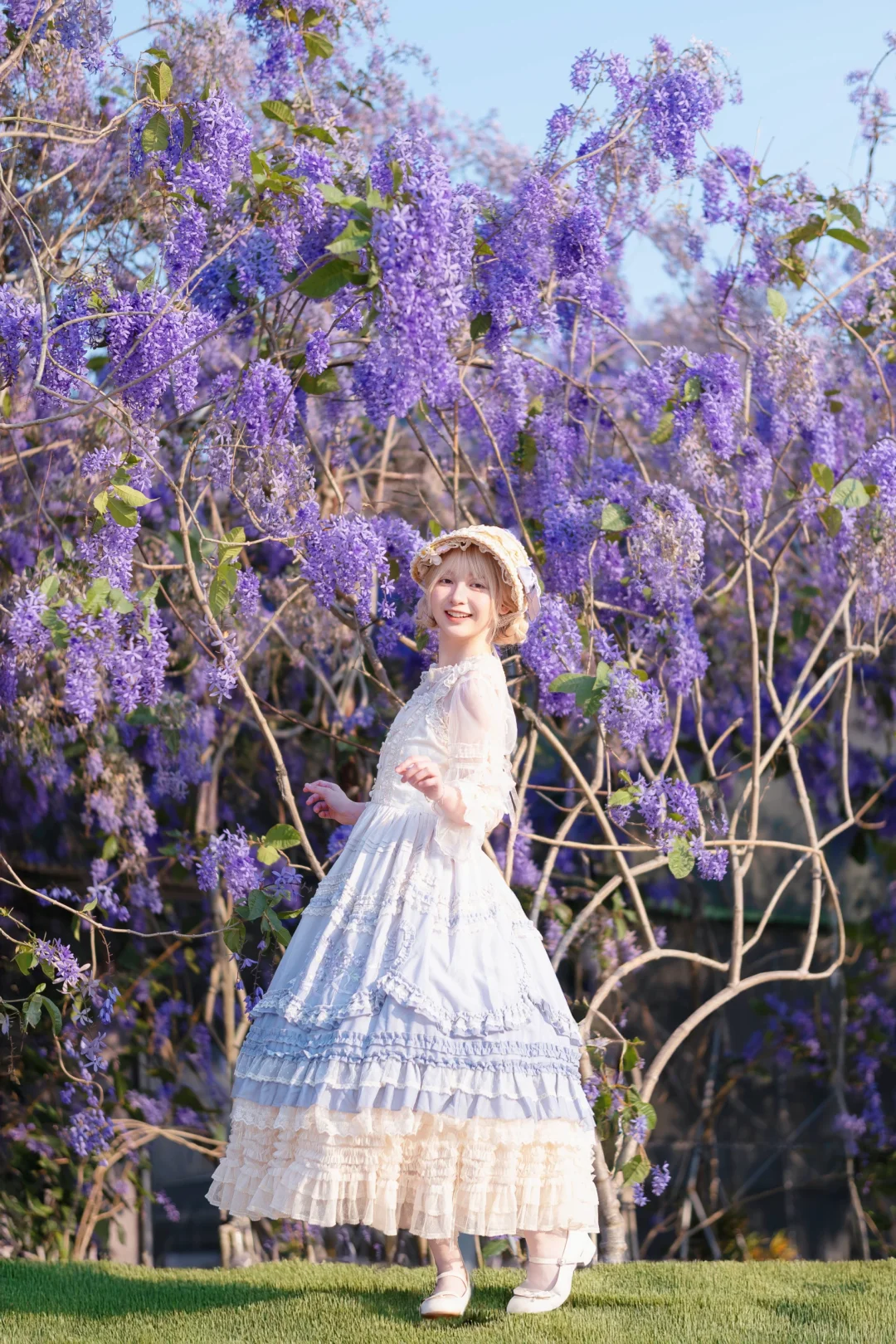 春天的气息, 蓝花藤紫色花海,太浪漫了; 拍照好好看, lolita,小白裙,汉服,JK风格都好看,很百搭; 浪漫的紫色系,很治愈; 位置📍:佛山顺德区福记园林;