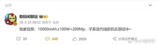 10000mAh大电池、100W快充再加上2亿像素主摄,不出意外这说的应该Redmi Note系列新机。这个配置如果把价格打到1500元内,估计又是一个爆品了