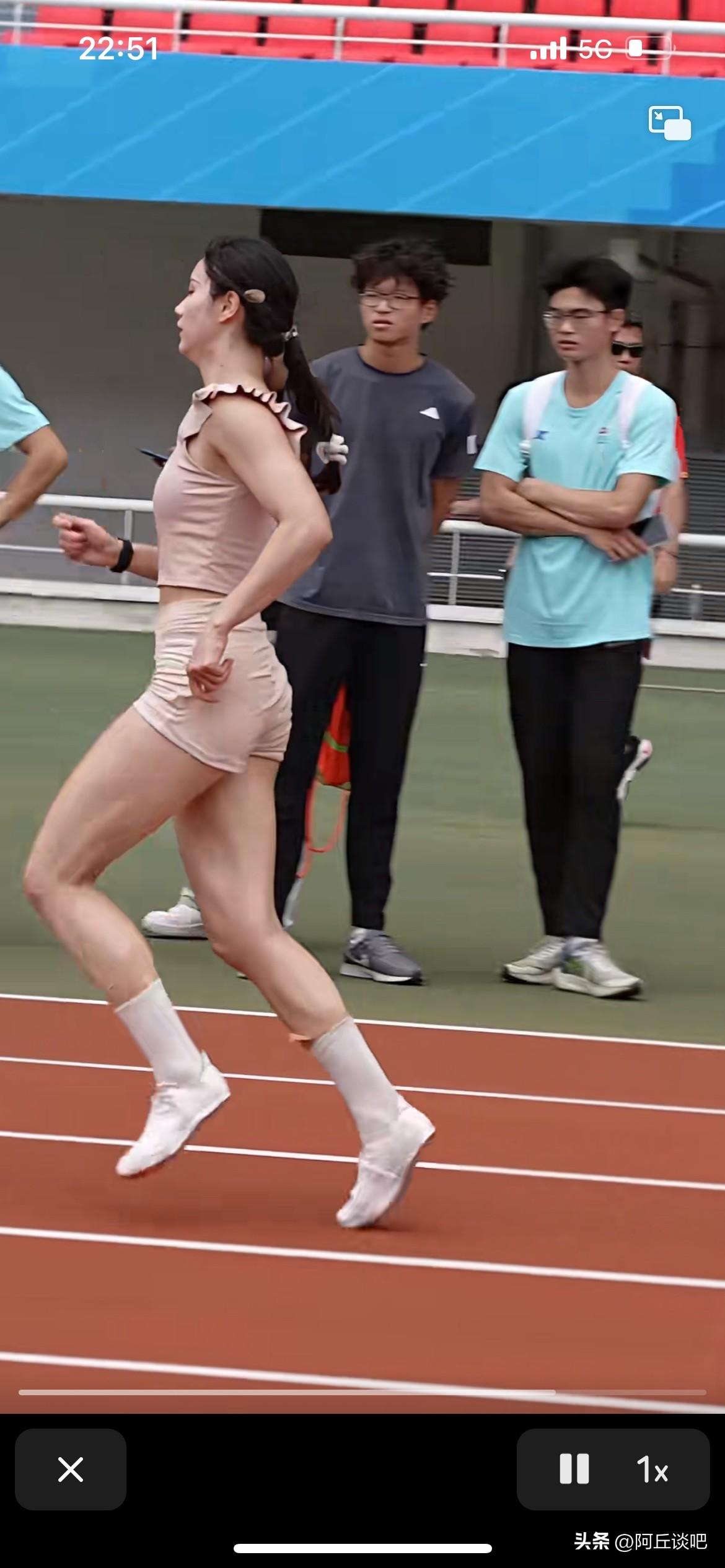 夏思凝老师穿成这样就训练了,难怪成绩上不来,都不穿运动服的。 夏思凝是一位骨子里有韧劲的姑娘。 现在网上有些人把夏和吴、林对比之下称夏思凝是花瓶。 但是相信这个姑娘某一天一定会为争这一口气跑出一定的成绩给大家看的,大家拭目以待吧。 夏思凝确实漂亮,身材也好,虽然成绩不是顶尖,但这身体素质也是万里挑一的!
