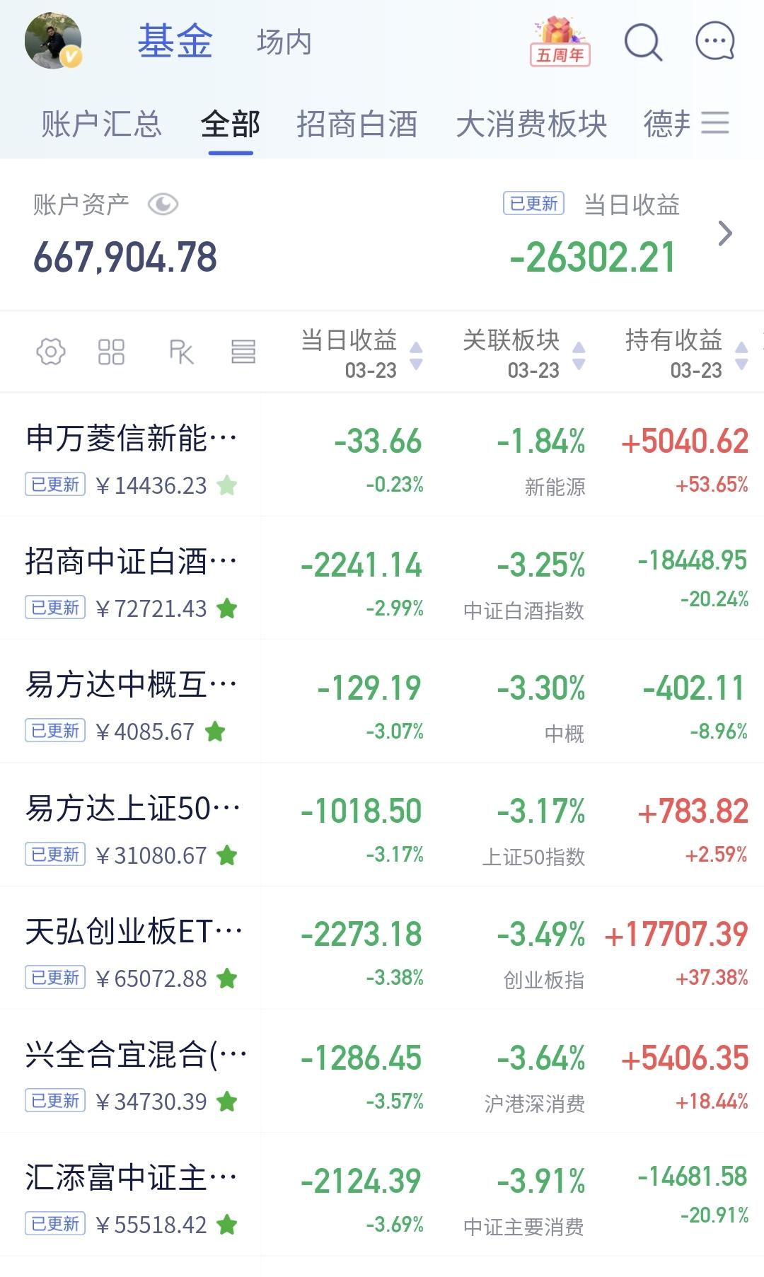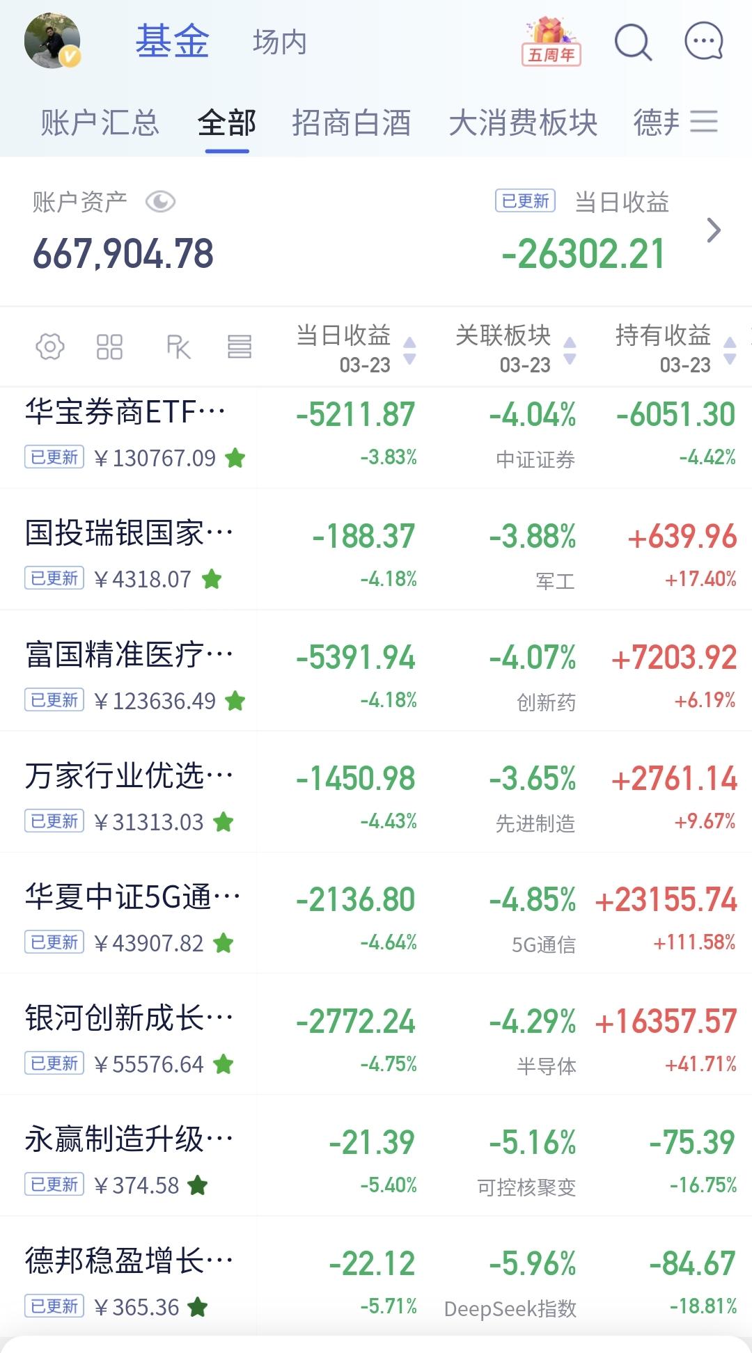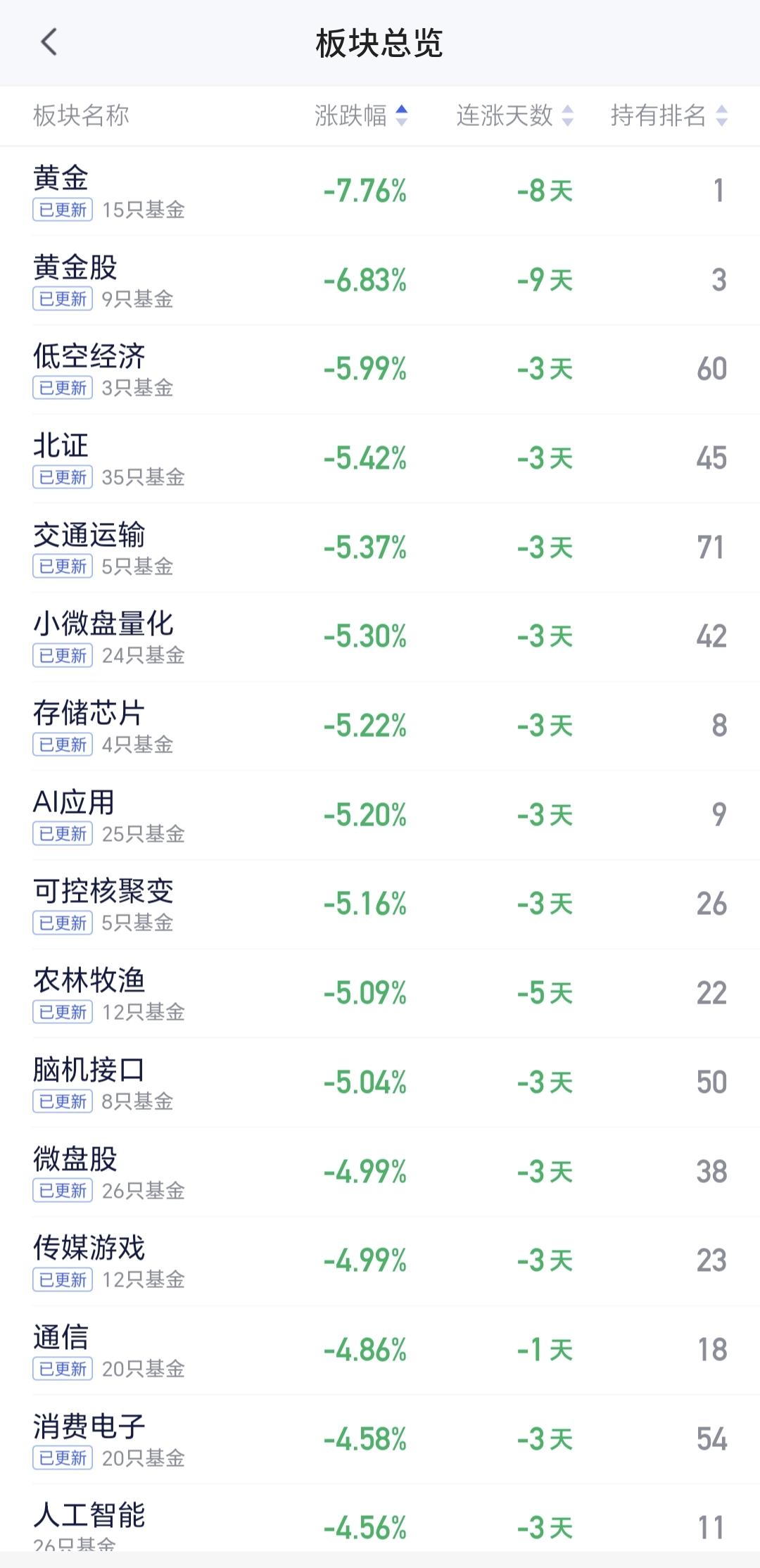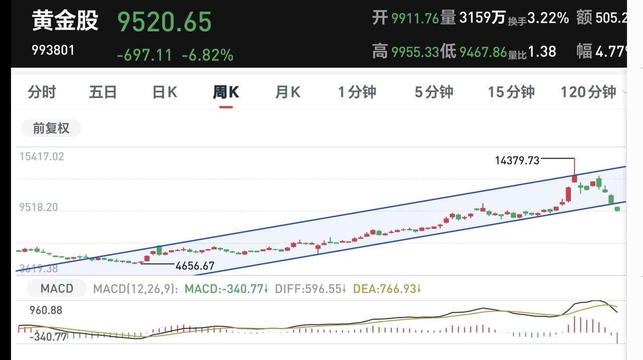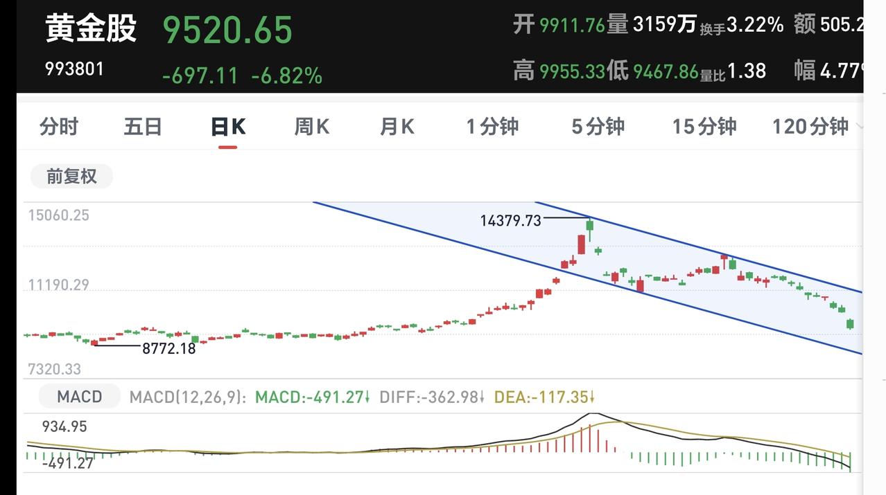 基金:外围市场虽然是大涨,但你也不要高兴的太早 美股指数高开高走,三大指数全部上涨,纳斯达克指数上涨了2.09%,道琼斯指数上涨了1.89%,标普指数上涨了1.74%,上涨幅度都不小。 欧洲市场现在也是上涨中,德国上涨了2.14%,法国上涨了1.67%,英国上涨了0.58%,上涨幅度也都不小。 持有的基金净值已经全部更新,下跌幅度最小的三个板块是:新能源汽车板块,白酒板块,海外互联网板块,下跌幅度最大的三个板块是:AI应用板块,可控核聚变板块,芯片半导体板块,净值整体亏损了26302元。 今天下跌幅度最大的是黄金板块和黄金股板块,一个是连续下跌了八个交易日,另一个是连续下跌了九个交易日,一个是持有人数排名第一,另一个是持有人数排名第三,两个板块里面散户的人数都比较多。 黄金股板块日线级别处于短期下跌通道中,今天的下跌还是在这个下跌通道当中的震荡,今天的下跌并没有改变日线级别短期的下跌趋势,想进场的人还是要耐心等待。 黄金股板块今天下跌跌破了周线级别上涨通道的下轨线,近期观察这个跌破是不是有效破位,如果是有效破位了周线级别上涨通道的下轨线,长线持有的人需要注意风险。 黄金股板块日线级别处于下跌趋势中,周线级别处于上涨趋势破位中,这个板块的进场需要谨慎,这个板块的进场还需要耐心等待,对于我来说,这样的板块散户人数太多了,热闹的地方不去,人多的地方少去,耐得住寂寞,才能守得住繁华。 外围市场的大涨对我们的影响只是开盘,开盘半个小时,或者是一个小时之后,市场的走势就跟外围的影响没有太大的关系,外围市场大涨会引发我们的高开,高开以后高走的过程当中如果有资金进场,这个高走有可能会有延续性,如果高走的过程当中没有资金进场,高开以后大概率会冲高回落,所以,外围市场虽然是大涨,但你也不要高兴的太早,何况,外围市场会不会冲高回落,现在还不知道,明天市场的涨跌对我们的操作策略并没有影响,我们还是会等待一个相对确定性的机会,有观点以后我会第一时间分享给大家。 花1秒钟点赞,花30秒钟评论,就是对我最大的支持,谢谢大家的支持。