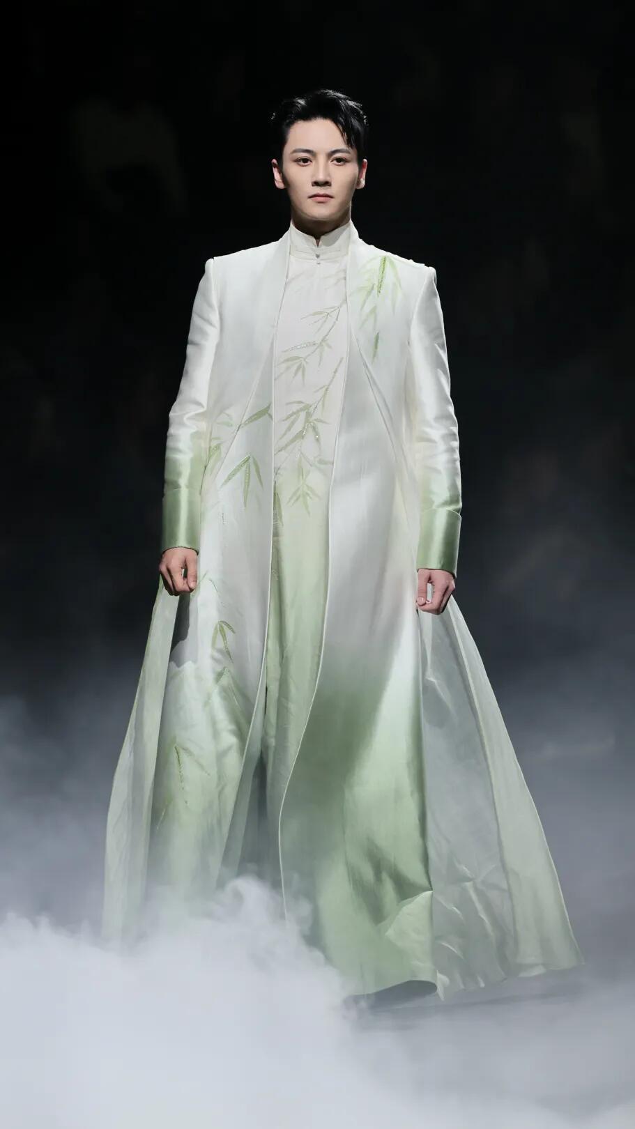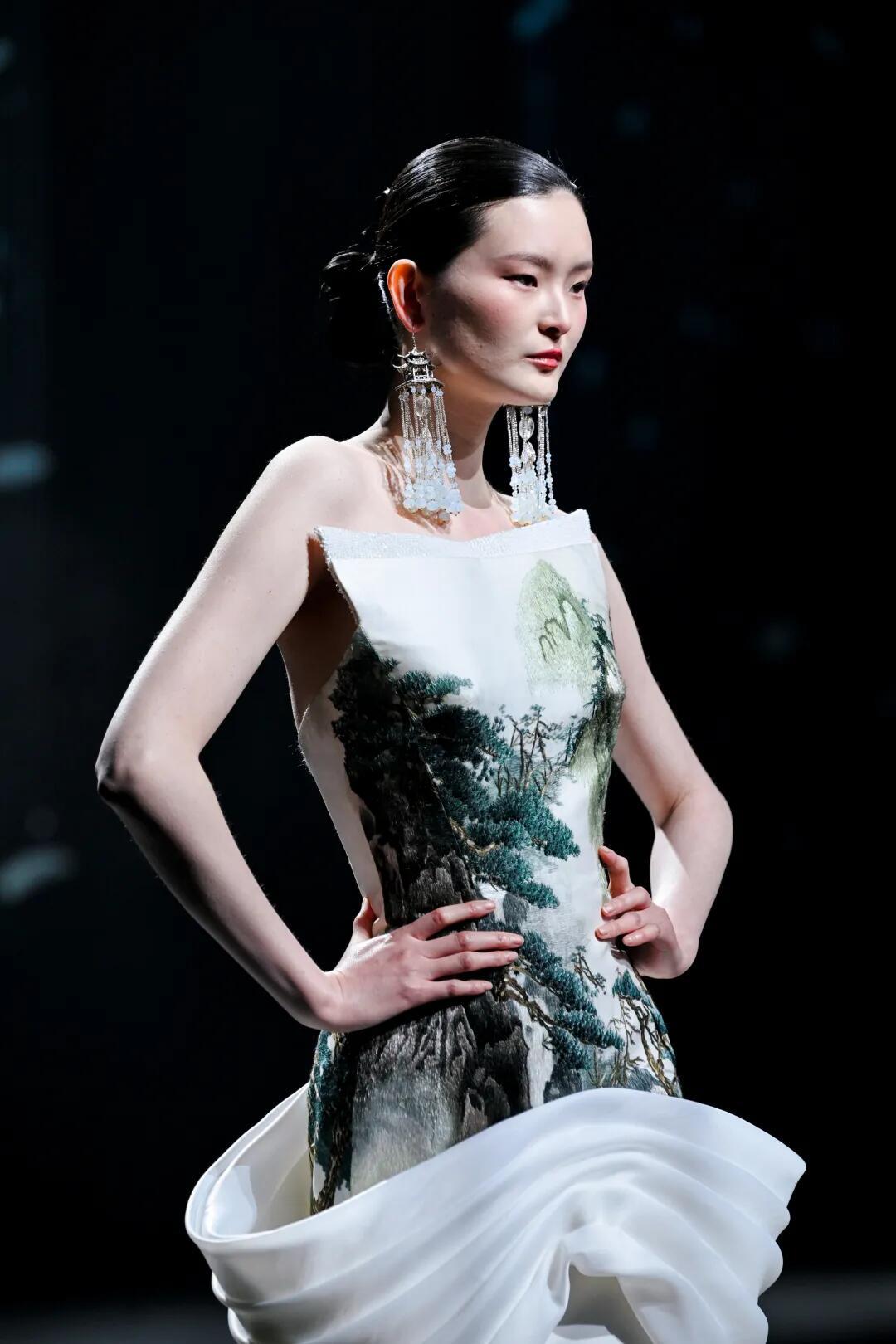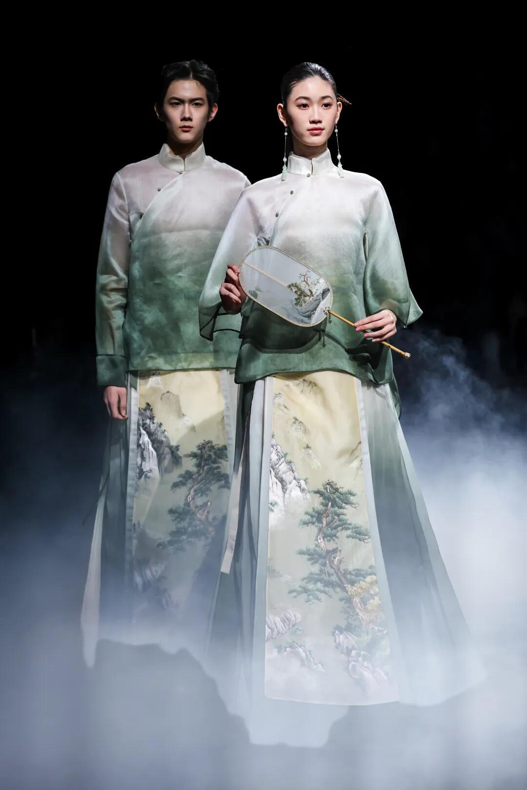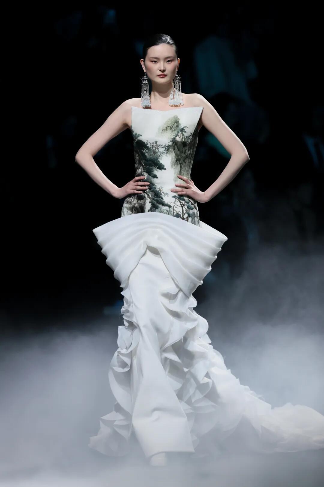 时装周中国国际时装周直击时尚幕后 熊英·盖亚传说|中国国际时装周开幕秀✨中国国际时装周以「锐意新生」为主题,开幕秀由熊英·盖亚传说担纲,带来「絮落」系列大秀。品牌以东方哲学为根基,继「月」耀巴黎、「花」开米兰后,再度向世界讲述中国故事。本季「宋韵清和·黛影含烟」系列承宋式极简风骨,取宋人留白写意之境,以茶汤染绢为底,墨青黛绿层层晕染,晕开江南山色的清和雅静。光影流转间,尽显空灵诗意,将千年东方雅韵裁成可穿于身的水墨长卷,诠释人与万物和谐共生的东方哲思。