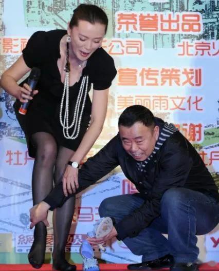 潘长江为梁爱琪脱掉高跟鞋? 梁爱琪短裙黑丝袜现身活动,潘长江主动帮她脱高跟鞋,这个动作很熟练,网友秒赞动作很绅士!