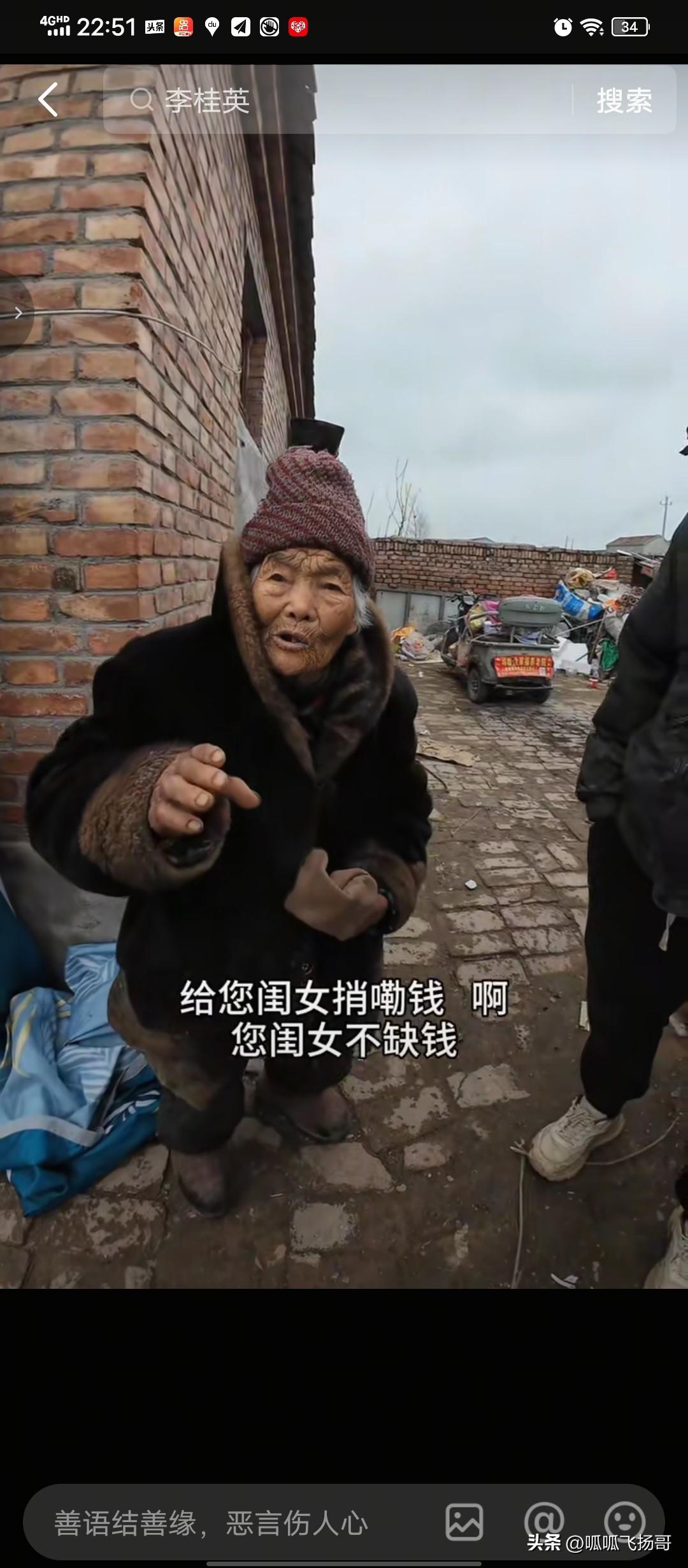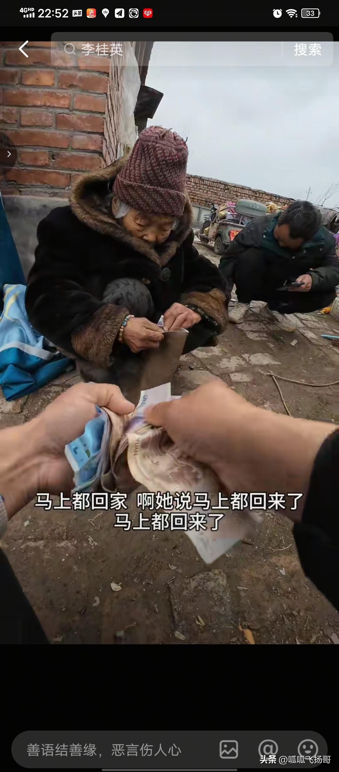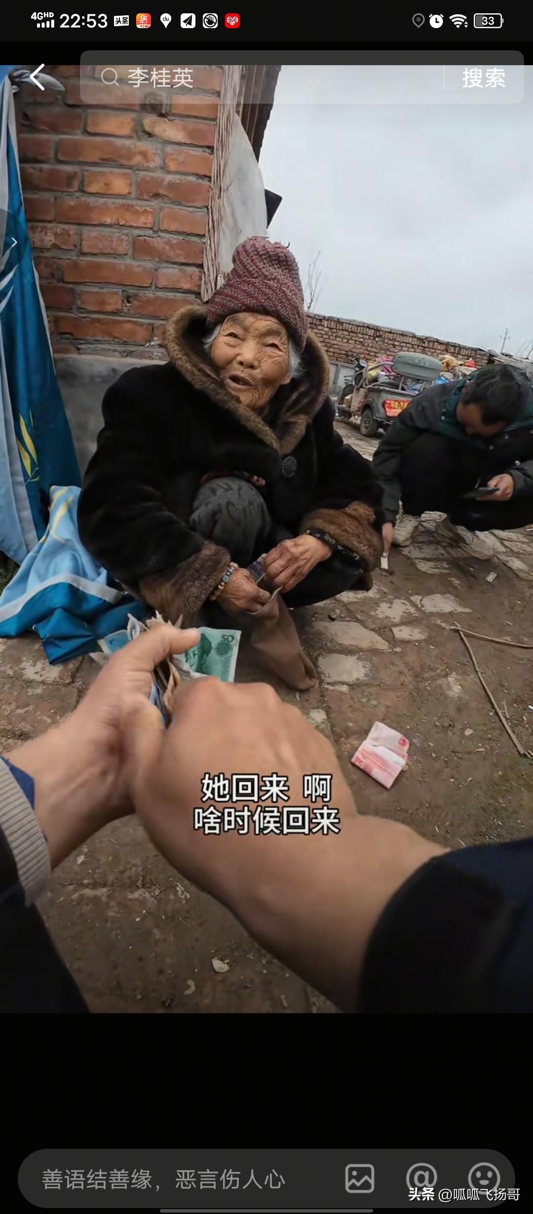 泪目! 刷到一个视频,一个跑腿来到一个87岁老人的家里, 告诉老人她的在新疆打工的女儿、女婿由于春节没回家,现在给她买了很多吃的回来孝敬老人。 有一条羊腿 ,一只烧鸡,两箱酸奶,还有两桶油,两箱面包 , 两箱砂糖橘,两箱香蕉和两箱啤酒 。 东西放置妥当 ,跑腿准备离开, 老人却叫住了他 。 随后老人从身上摸出一个布口袋,开始从外掏钱 。 跑腿说不用给钱,你女儿早就给啦, 你女儿女婿说过年没回来,买这些东西专门孝敬你的 。 老人却说 , 我这是叫你给我捎钱给女儿 。 跑腿说你女儿不缺钱,你留好就齐啦。 老人说我不知道咋给她打(钱)。 一边说老人就一边从口袋里往外掏钱 ,钱都不是大钱,没有一张红色的,都是20块10块5块的小零钱 。 但老人不听依然张一张一张的零钱叠起来 。 有个邻居在旁边说她女儿太远了,她想给女儿拿点钱去 。 老人将一叠20元10元的零钞递向跑腿:你查查, 这是100吧 。 跑腿只得接过钱 , 说:我看了,是100 。 就这样老人向跑腿递了6叠零钱。 这还没完 , 老人将剩下的几个钢镚也递给了跑腿, 口中数道:6块,7块 ,8块,9块 , 10块还差一点。 于是老人继续在她的布口袋里面掏 , 终于又凑足了100块 。 跑腿对老人说 ,总共700块 。 老人笑了,这样吧 ,就给她捎这700块 。 这700块是老人所有的积蓄 。 跑腿在电话中告诉老人的女儿说你妈妈要给你捎钱嘞,整整700块嘞,连五毛都捎过来啦 。 接着跑腿又对老人说,你女儿说要回来看你嘞 。 这钱你收好,等你女儿回来给她,你女儿说马上就要回来啦 。 这钱她回来了你到时再给她 。 老人似乎听懂了, 惊讶地两眼放光,看着跑腿问道: 她回来?啥时候回来? 跑腿赶忙说她说太快回来了,马上就回来啦。 过几天就回来了 。 这钱你收好 。 跑腿将700块钱折叠好又交给老人。 老人是否有些不信, 说你是借话说事儿, 逗我开心啊 。 很明显,老人的心里是多么希望女儿女婿马上回来看她呀 。 跑腿说的没错,当女儿听到跑腿说她妈妈要捎给她700块钱,连五毛都捎了的时候,在电话中确实说要马上回来看妈妈。 老人87岁了,她的女儿应该也不小了 , 60岁应该也有了吧 。 这对母女感情如此之好真让人羡慕 !