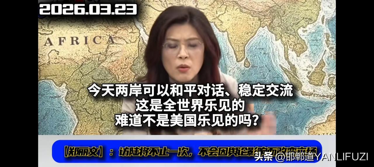 郑丽文这态度相当刚!“两岸和平不能等”“我不止要去大陆一次”。 3月23日,郑丽文接受历史哥李易修专访,郑丽文称:两岸和平不能等!我不止要去大陆一次,也不会因舆论改变立场。这态度相当刚! 当下,2026“九合一”选举日益临近,岛内局势复杂。赖清德挑动两岸对立还针对郑丽文,造谣抹黑“访陆条件论″,什么不反军购到底不能去,现在军购正在过审,没有影响啊;还有不接受一国两制不能去,不提统一不能去等等。事实是完全没有条件。只要坚持九二共识就行了。尽管一直抹红抹黑,可她依旧坚持访问大陆计划不变。 民进党长期阻挠两岸交流,让台湾百业受苦。郑丽文想以行动证明两岸能和平交流,创造更多福利。 越来越多台湾有识之士呼吁两岸交流合作,而民进党却操弄两岸对立。 郑丽文这立场顺应民意,希望她的行动能为两岸和平交流添把力。