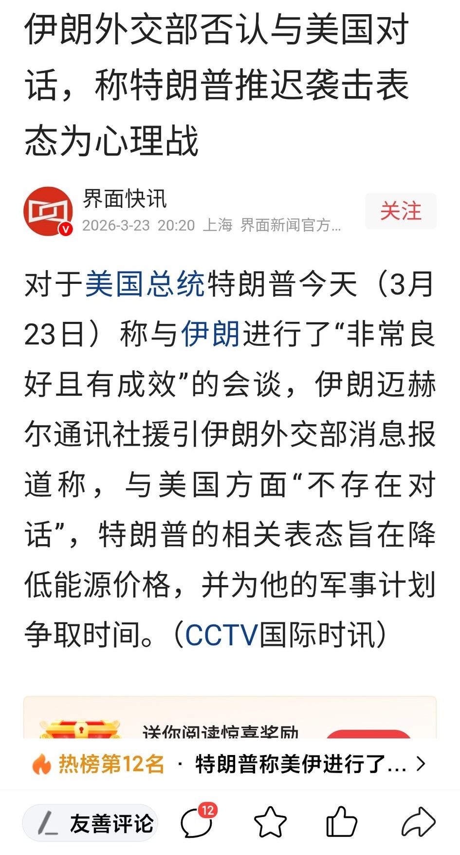 特朗普称已同伊朗领导层进行富有成效的对话! 伊朗外交部否认与美国进行了对话!说特朗普的表态是在降低能源价格,为他的军事计划争取时间! 问题来了,特朗普说不是同伊朗最高领袖进行对话?伊朗外交部也没参与?那究竟是谁代表伊朗领导层与美方对话的?这才是重点! 还是只是“烟雾弹”?