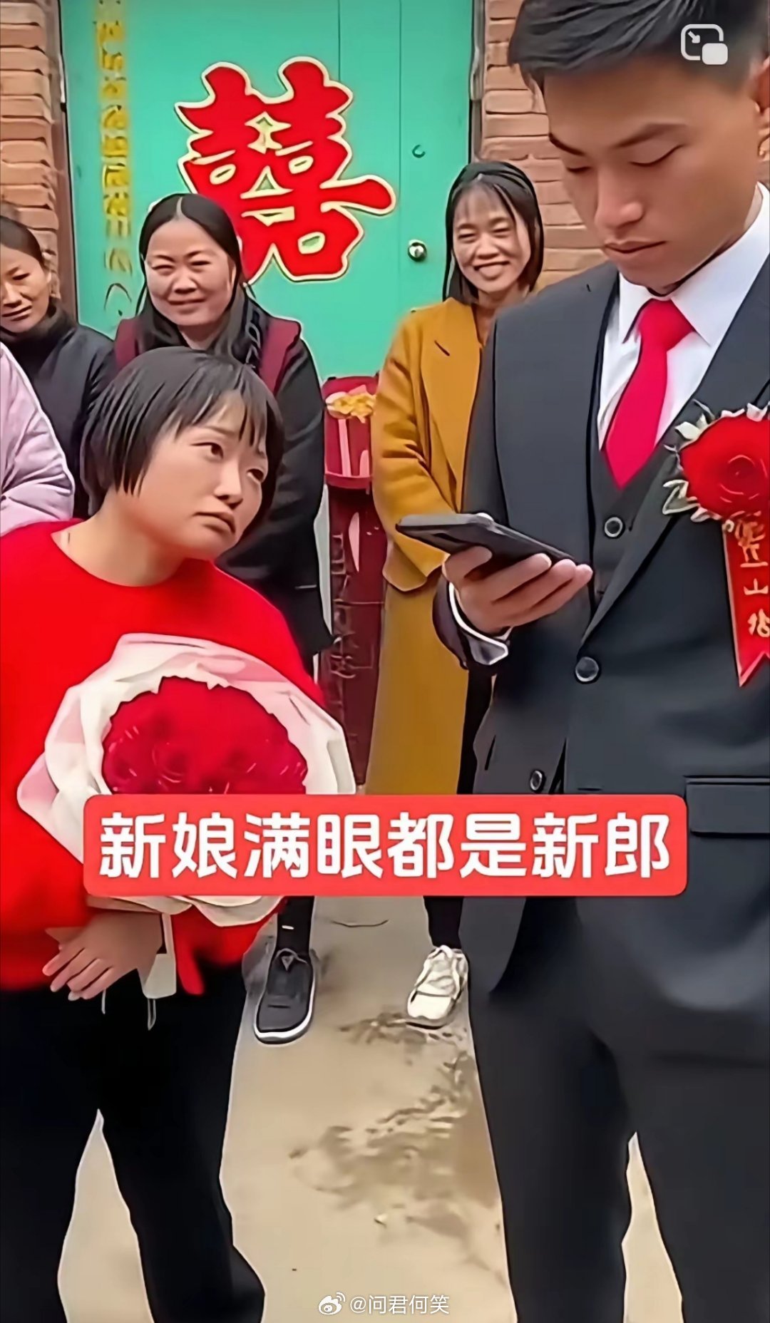 新郎一表人才,新娘嘴角就没下来过,眼里全是藏不住的欢喜。
