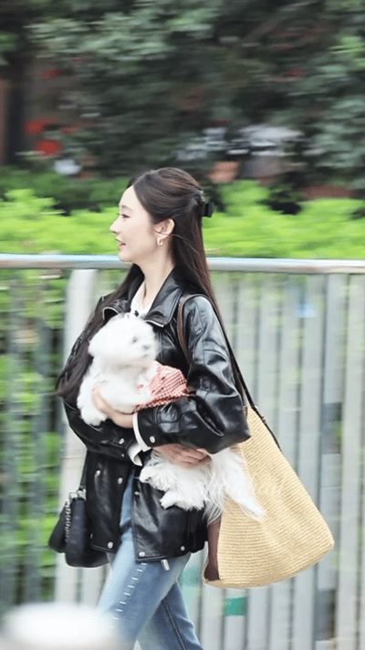 张艺凡上班带狗饭撒 上班路上她笑着跟粉丝挥手互动,身边的小狗搭子也跟着探头探脑。