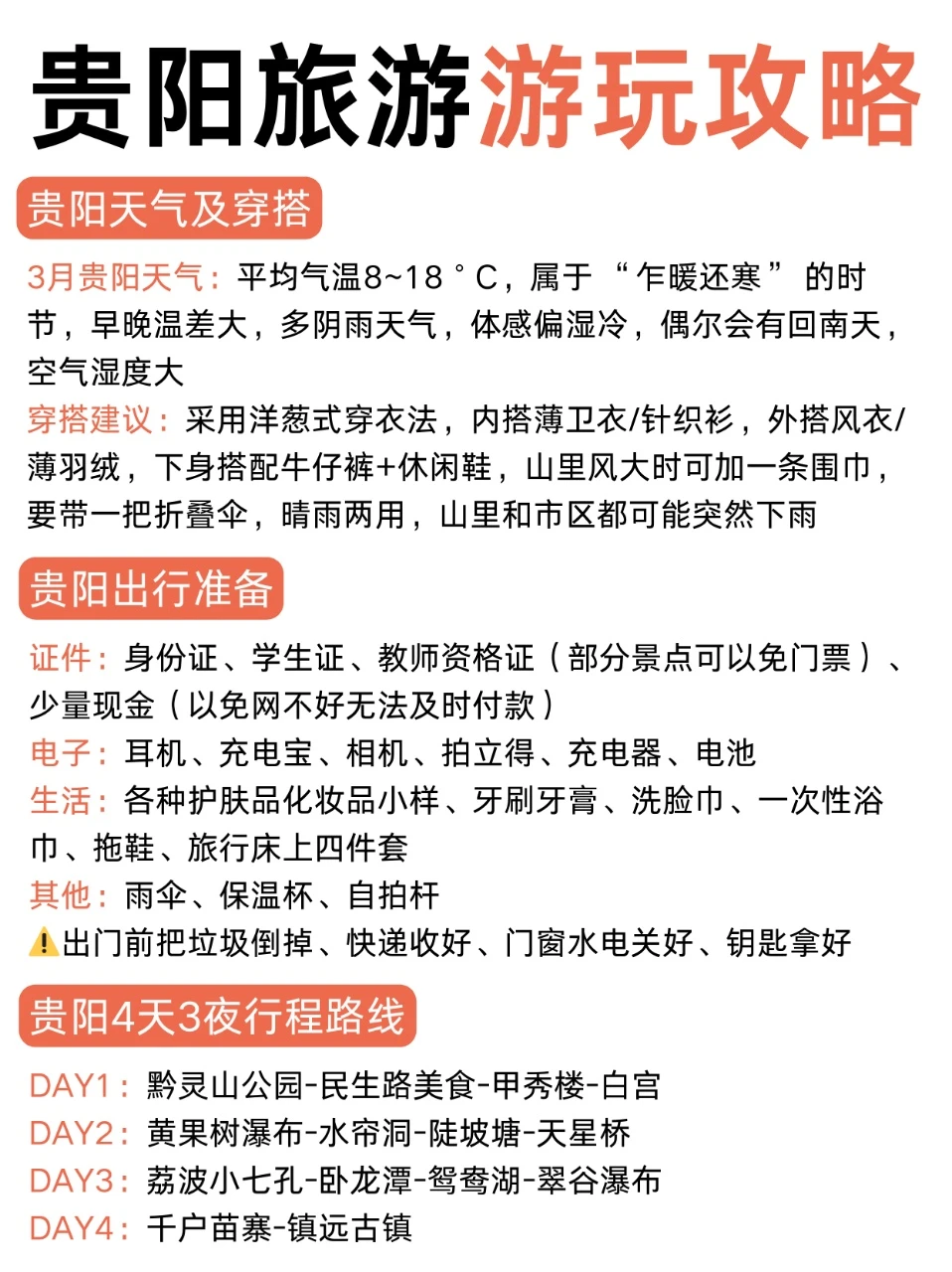 ⭕️p7关于贵阳出行的内容,有天气、穿搭、出行准备、行程,还是比较全面的,大家可以参考~