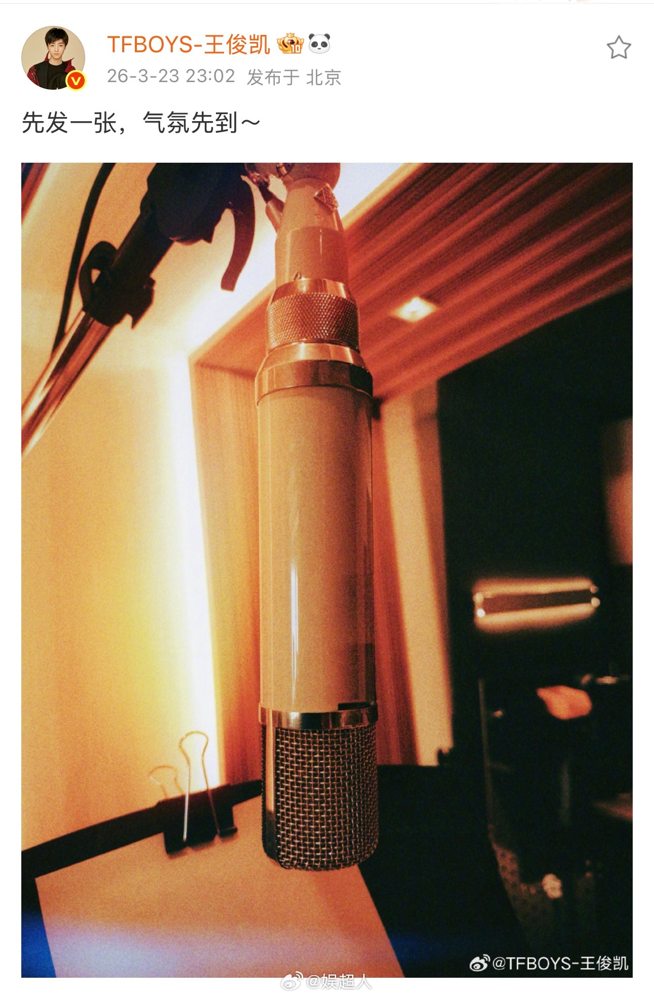 王俊凯录歌照王俊凯录音棚背影照王俊凯晒录音棚背影照!这是又在准备什么惊喜啦🎵