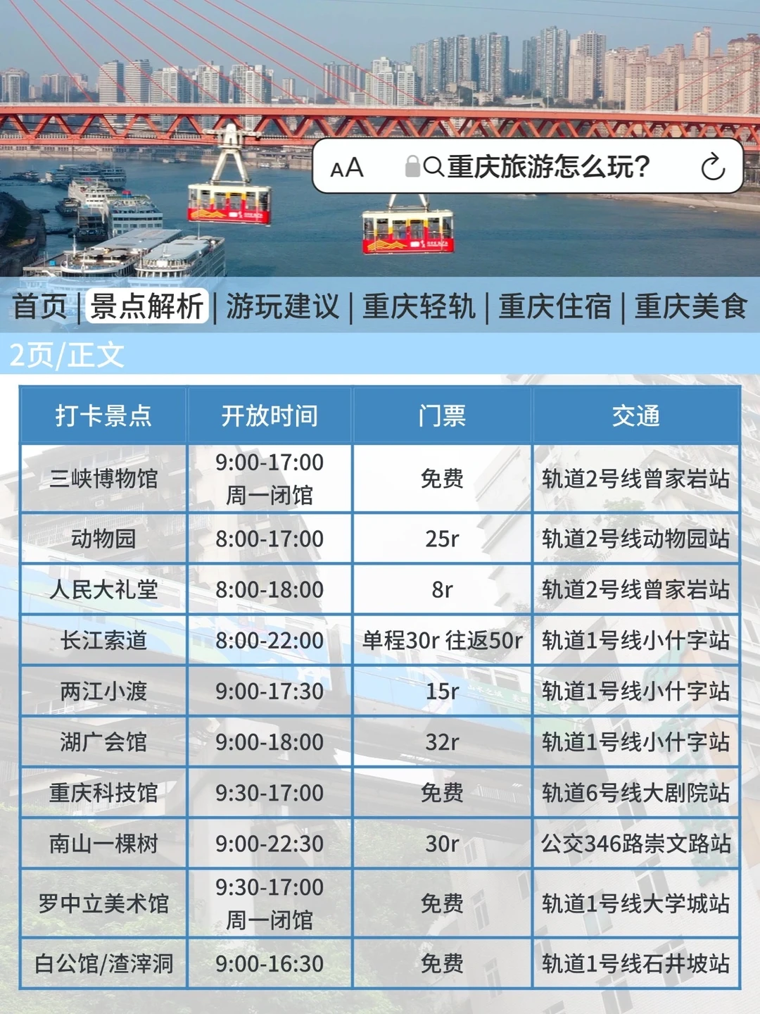 赶紧存下吧,很难找全的!重庆出行指南🈶重庆精华景点🈶重庆交通攻略🈶重庆美食推荐🈶