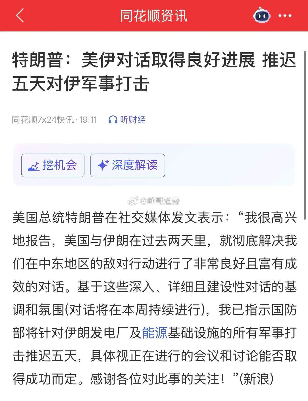 一是川普称美伊过去两天已经进行了对话(用了非常良好和富有成效来形容,说明对话还挺不错);