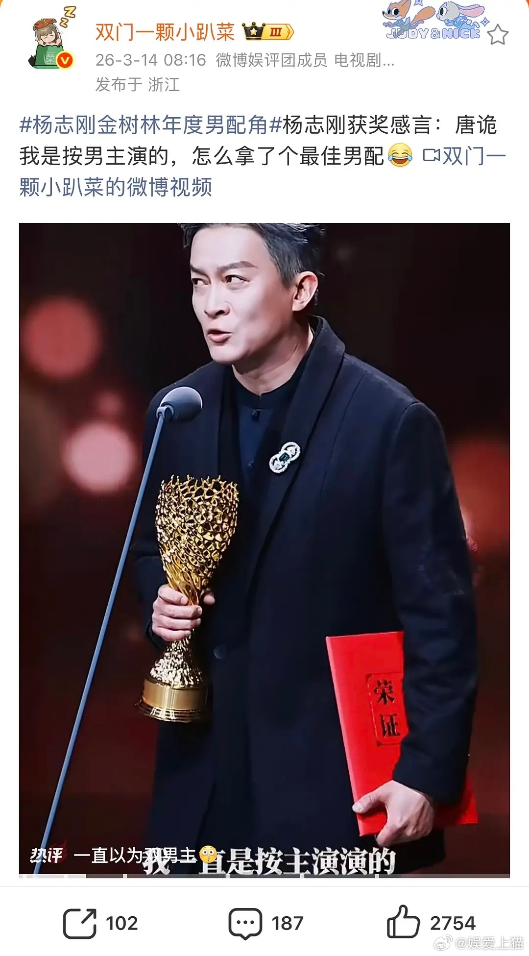 金树林最佳男配杨志刚获奖感言:唐诡我是按男主演的,怎么拿了个最佳男配???