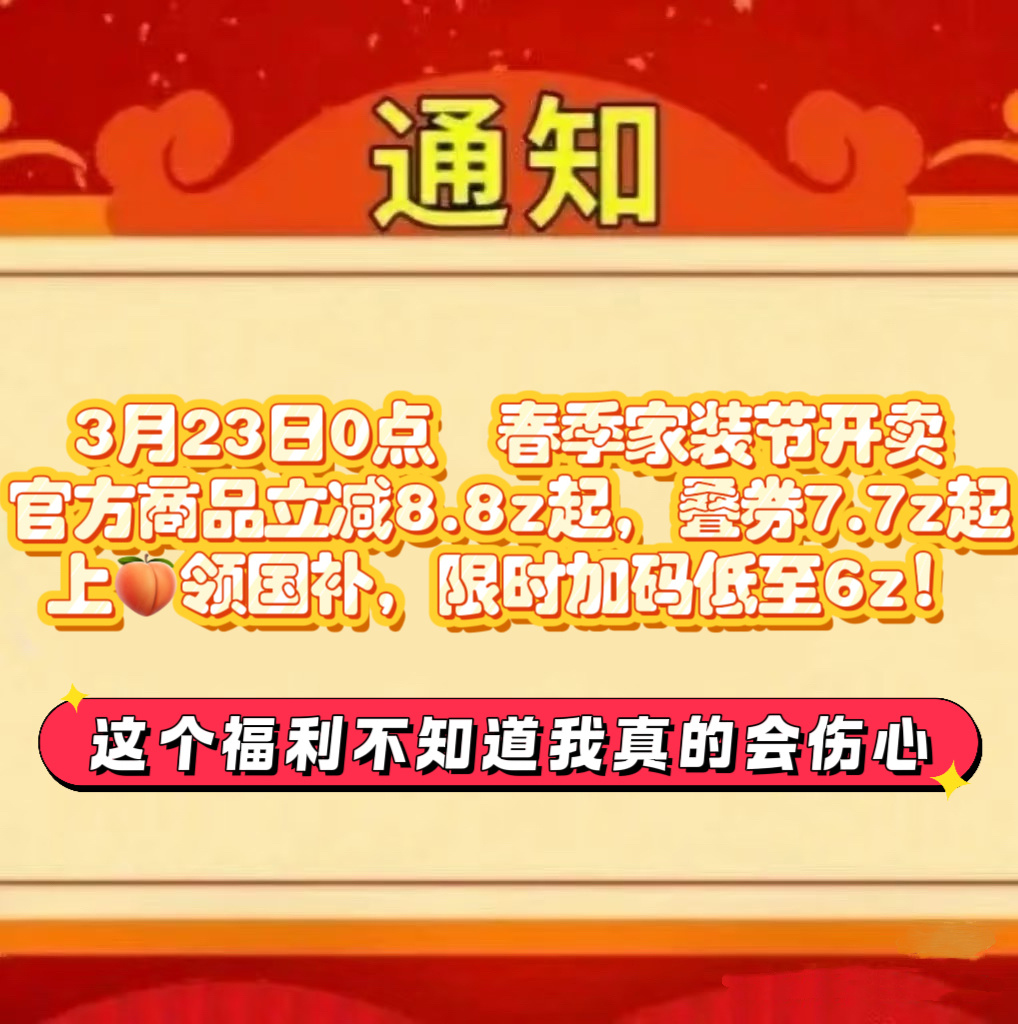 浙江国补加码一补到位 救命!这波浙江国补不冲真的亏炸,3月23日0点淘宝春季家装节上线,官方立减8.8折起,叠券7.7折起,上🍑领国补,限时加码低至6折,数码、家电、家装全品类覆盖,全国多省市同步享受,活动只到3月31号,手慢无!上淘宝领国家补贴淘宝国补