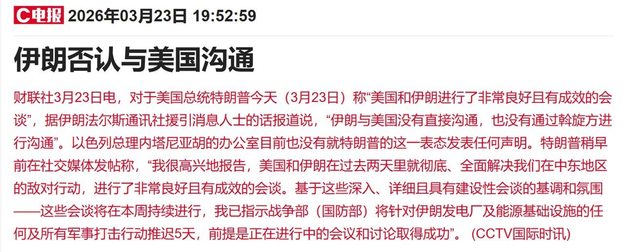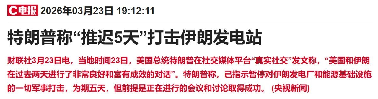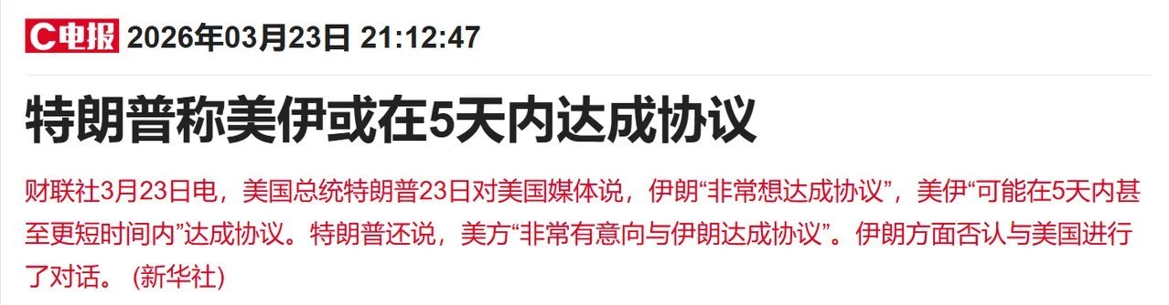 又来反转!散户一头雾水,今晚消息密集,周二A股将高开反弹局势反复毫无严肃性,懂王接连释放缓和信号,明显在主动找台阶,全球市场风险偏好快速回升,周二A股大概率迎来修复反弹。今晚消息真假交织,核心脉络清晰:懂王宣布推迟5天军事行动,称近期对话富有成效,表态有意与伊朗达成协议,还透露双方或通过三国外长传话,5天内有望达成共识。伊朗方面则快速否认存在任何沟通,拒绝给台阶,但整体风向已转向缓和。受消息扰动,全球金融市场剧烈波动。原油大幅跳水,布油一度跌至96美元,当前跌幅约10%。日经225期货夜盘大涨超4%,富时A50指数涨超1%,欧洲股市全线反弹,恒生指数期货涨超2%。懂王释放求和信号后市场情绪走高,伊方辟谣后短暂回落,伴随缓和信号持续释放,股市再度拉升,油价继续下探。白天A股跌破3800点,市场陷入极致恐慌,大量散户割肉离场,晚间外围却迎来全面利好,美股躲过大跌,亚太市场明日高开基本定局。这场反复拉扯的局势,最终受伤的仍是普通股民,频繁被情绪左右遭遇收割。今日有关键数据佐证:南向资金净买入超297亿港元,创下年内单日净买入次高,市场至暗时刻,大资金已逆势抄底港股筹码。短期虽仍存不确定性,但缓和信号明确,做空资金将趋于谨慎,被压制的做多情绪有望在周二集中释放。切记不要倒在黎明前,当下以不变应万变。持仓者躺平等待修复,观望者耐心等待右侧信号,散户在极端行情中最忌追涨杀跌。