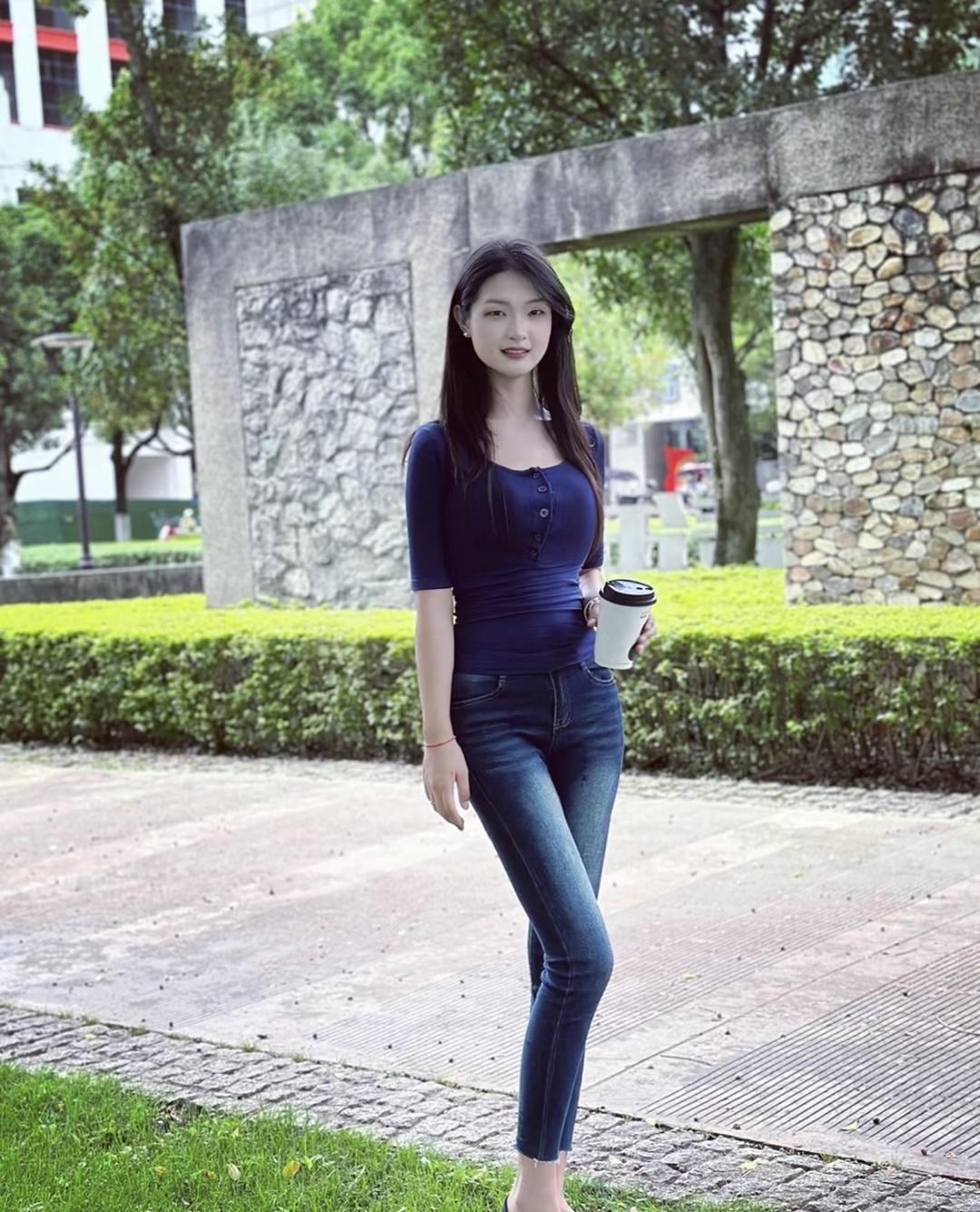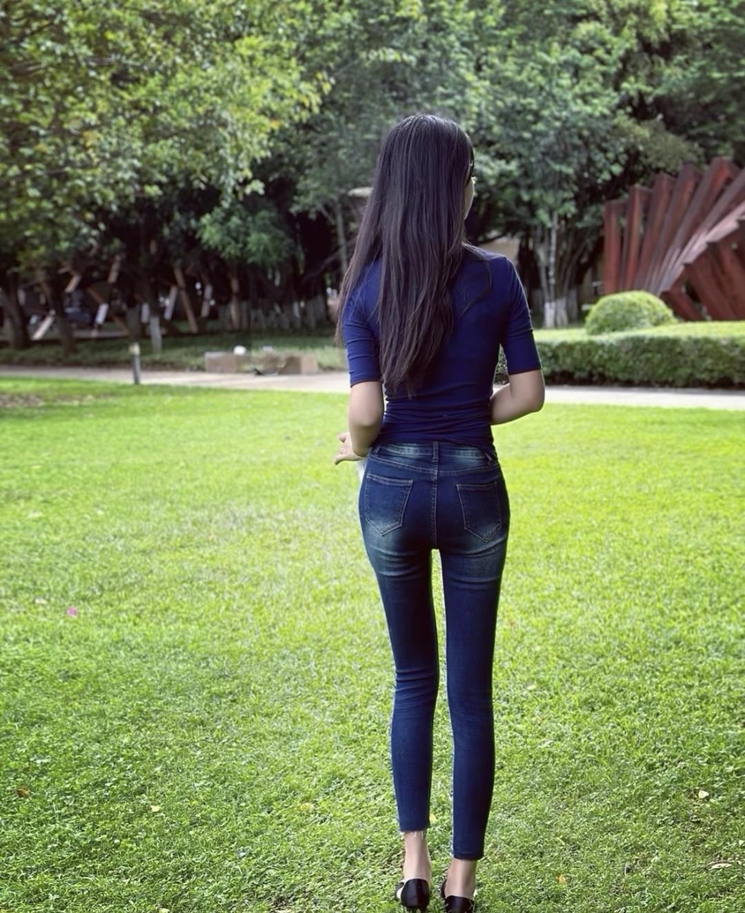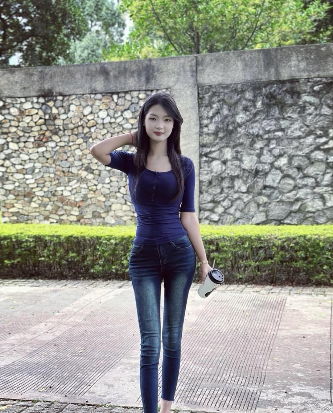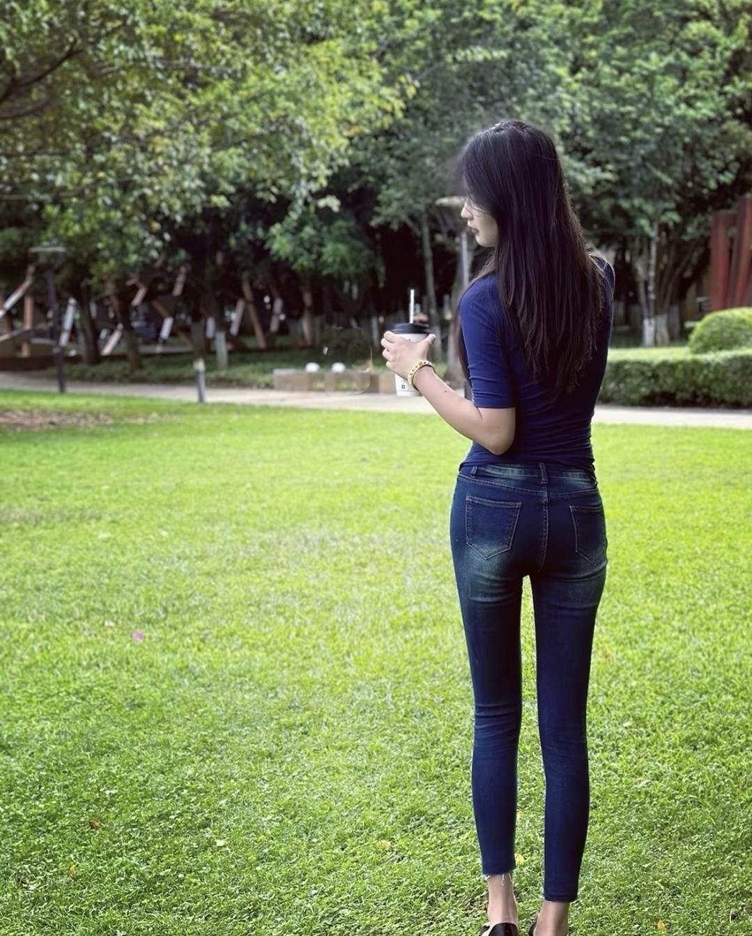 谭松韵紧身牛仔裤穿搭