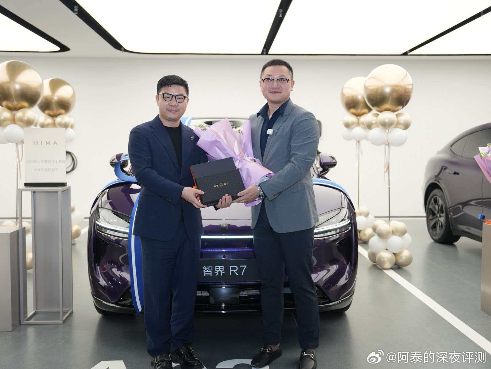 哈哈哈,老朋友智界执行董事及执行副总裁赵长江现身长沙交付现场,为首批车主交付新车。首台896线激光雷达智界R7交付