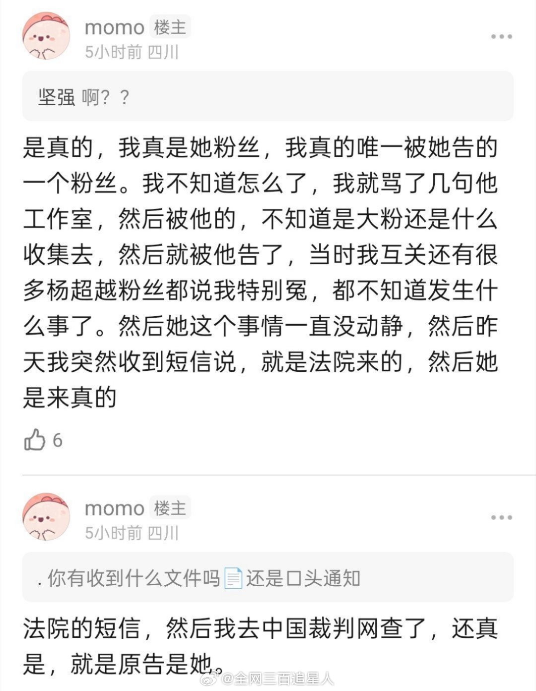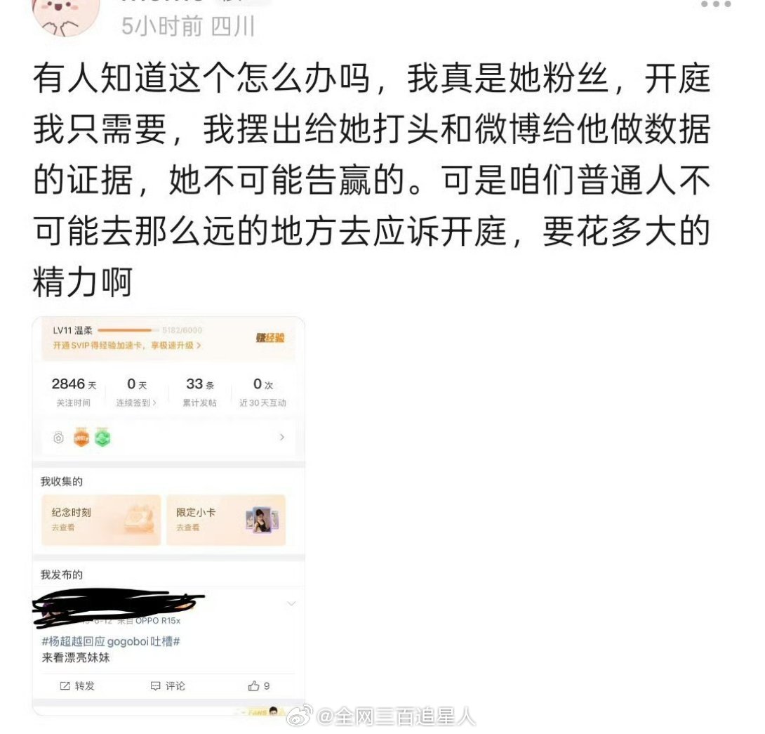 自称杨超越八年老粉的人说自己嘴了几句工作室然后被告了😦