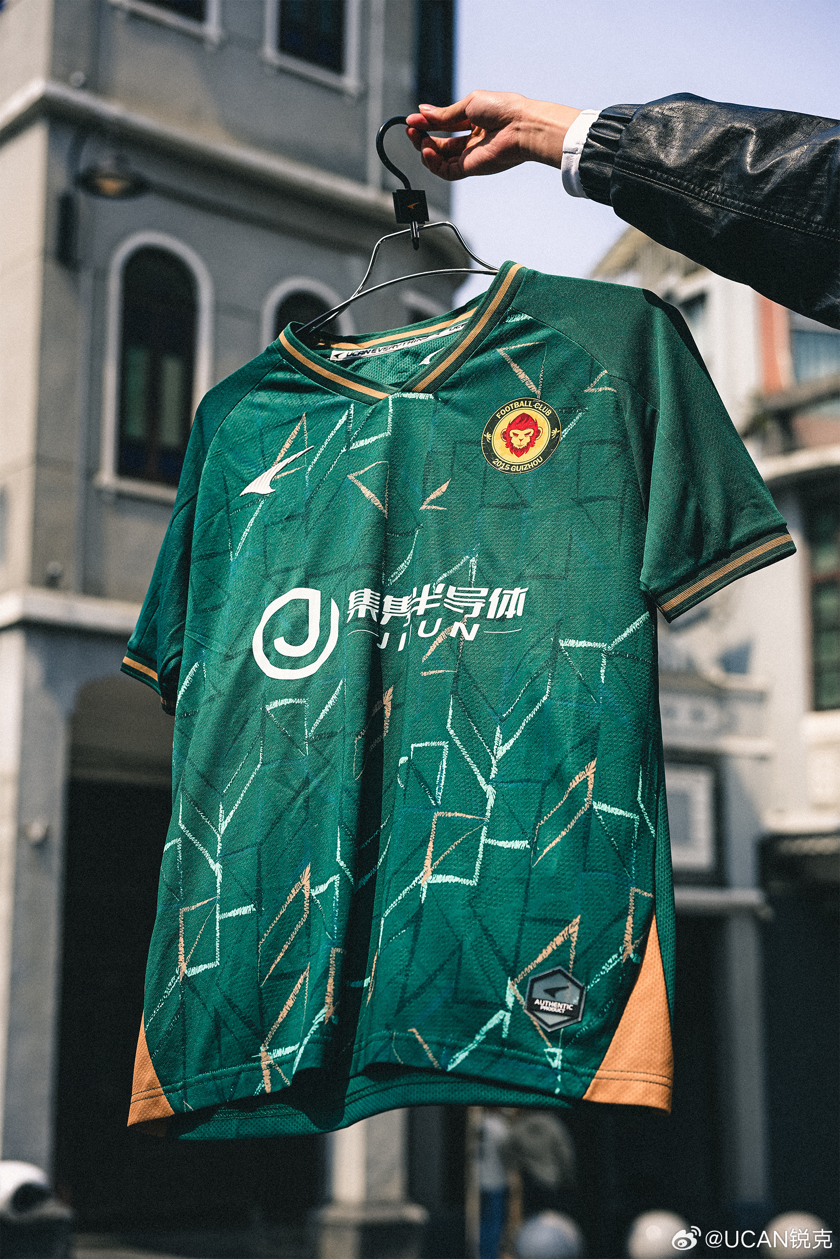 低级别联赛好球衣丨贵州贵阳竞技主场以黔山青绿为底色,将千户苗寨错落肌理化作衣身暗