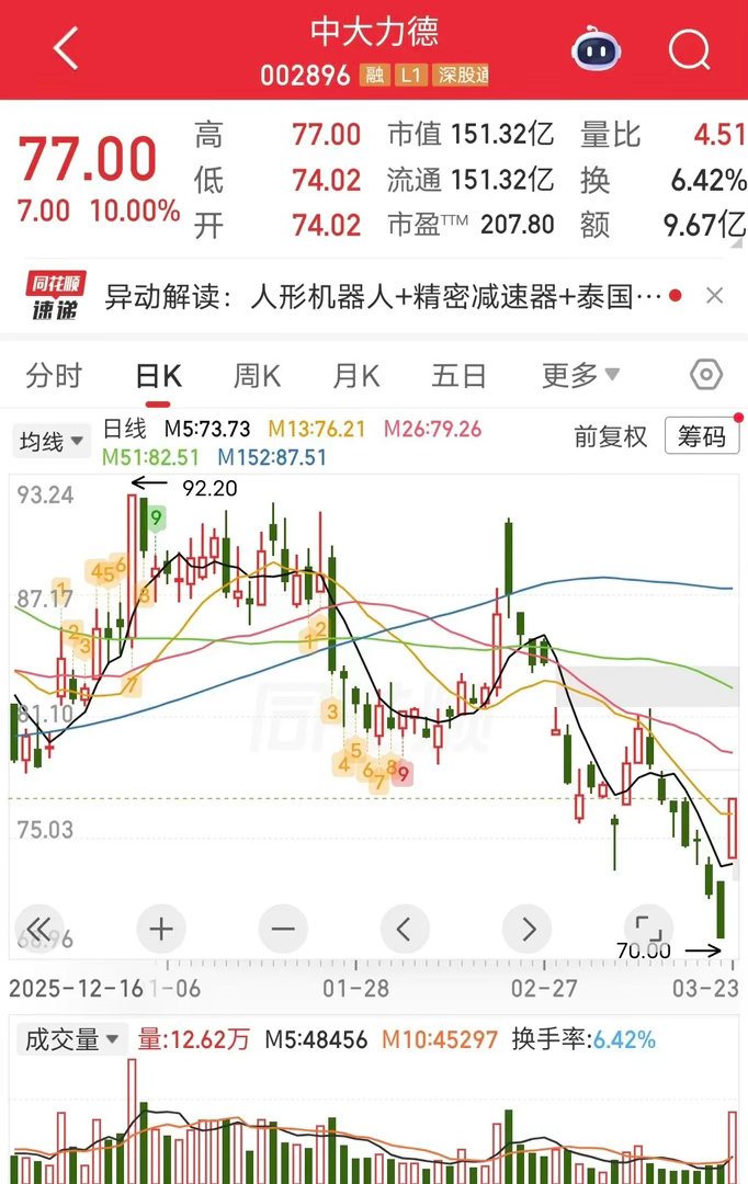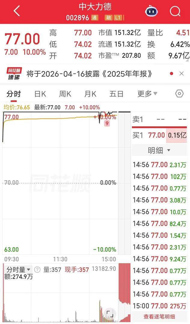 今天中大力德开盘快速涨停,不过尾盘炸板回封。