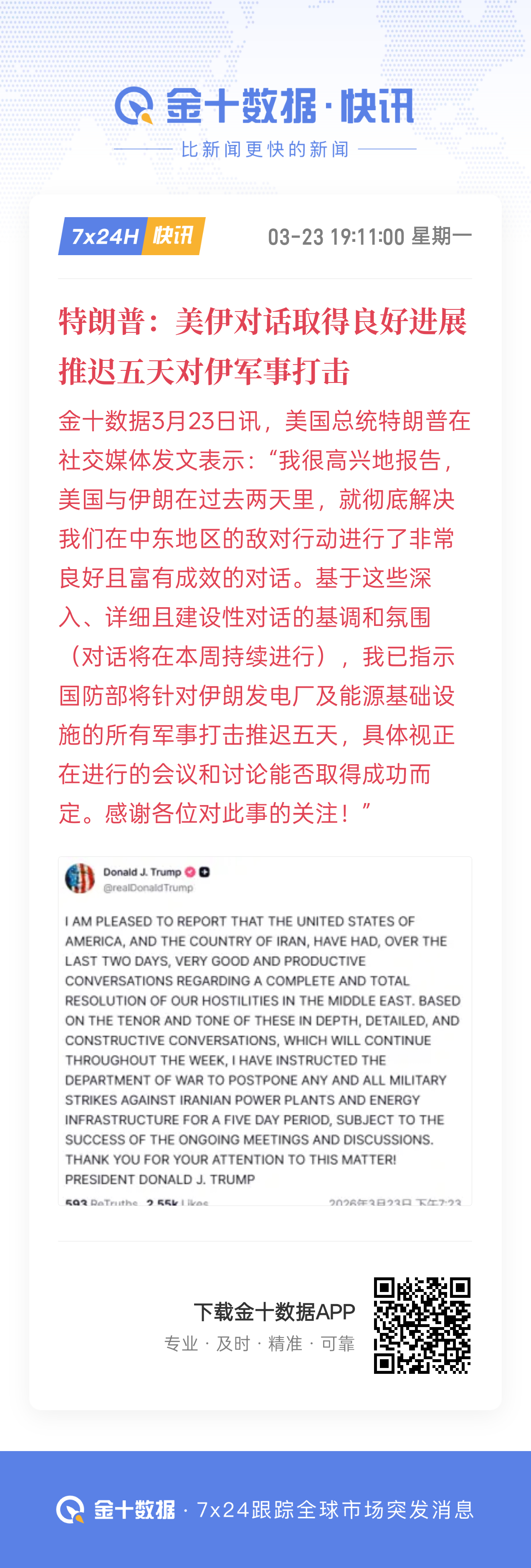 特朗普称推迟5天打击伊朗发电站烽火问鼎计划美伊以冲突