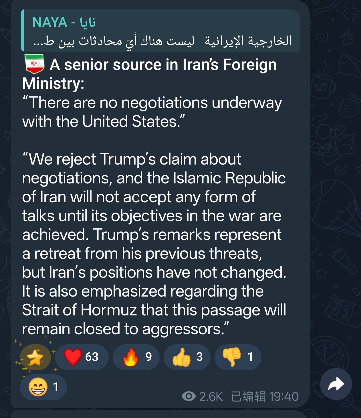 🇮🇷 但是伊朗外交部一位高级消息人士告诉NAYA通讯社: