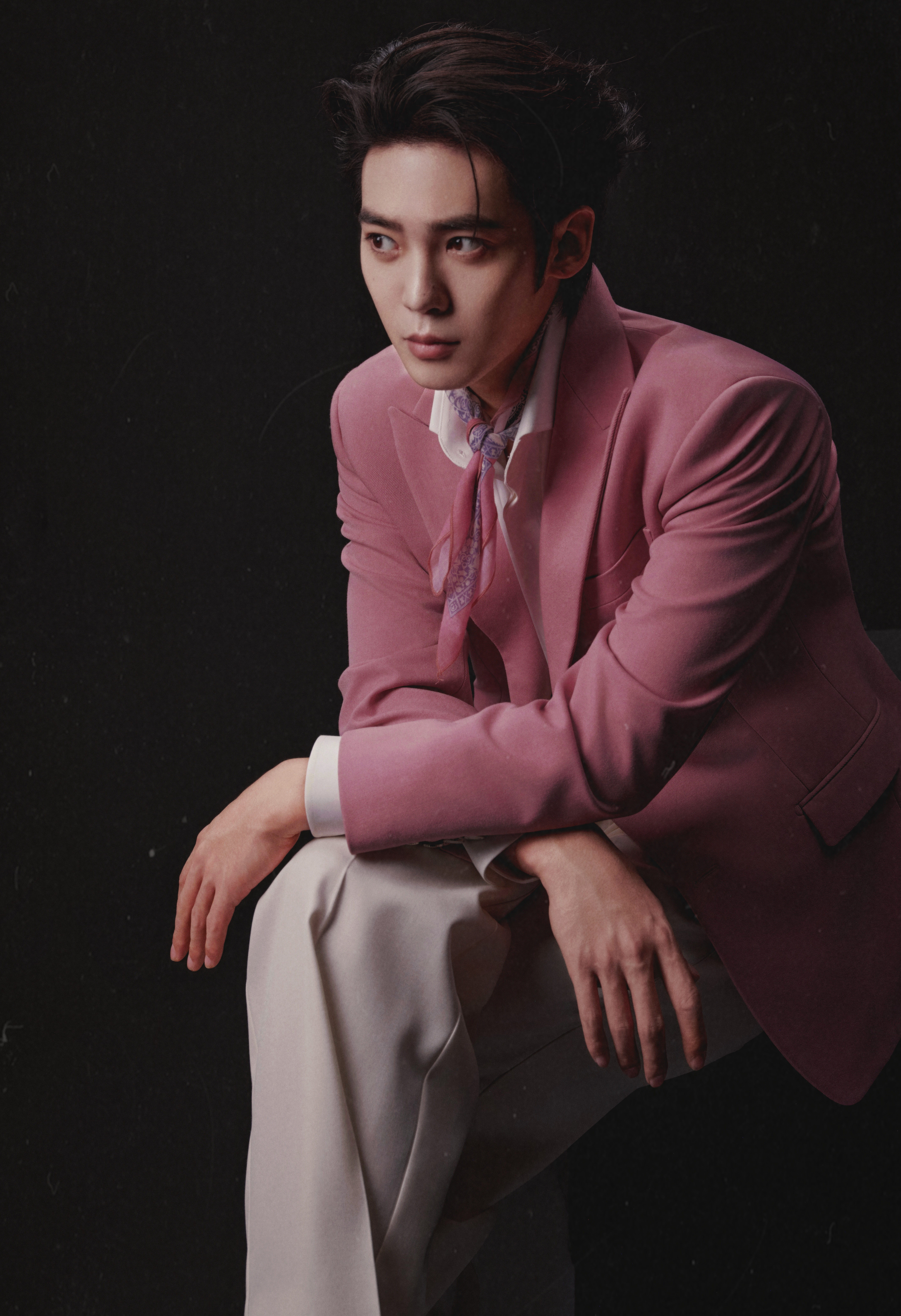 于适代言活动新造型 !印花丝巾与粉色西服外套点缀 ,今天是醇香 、细腻的葡萄酒味小于 !🍷