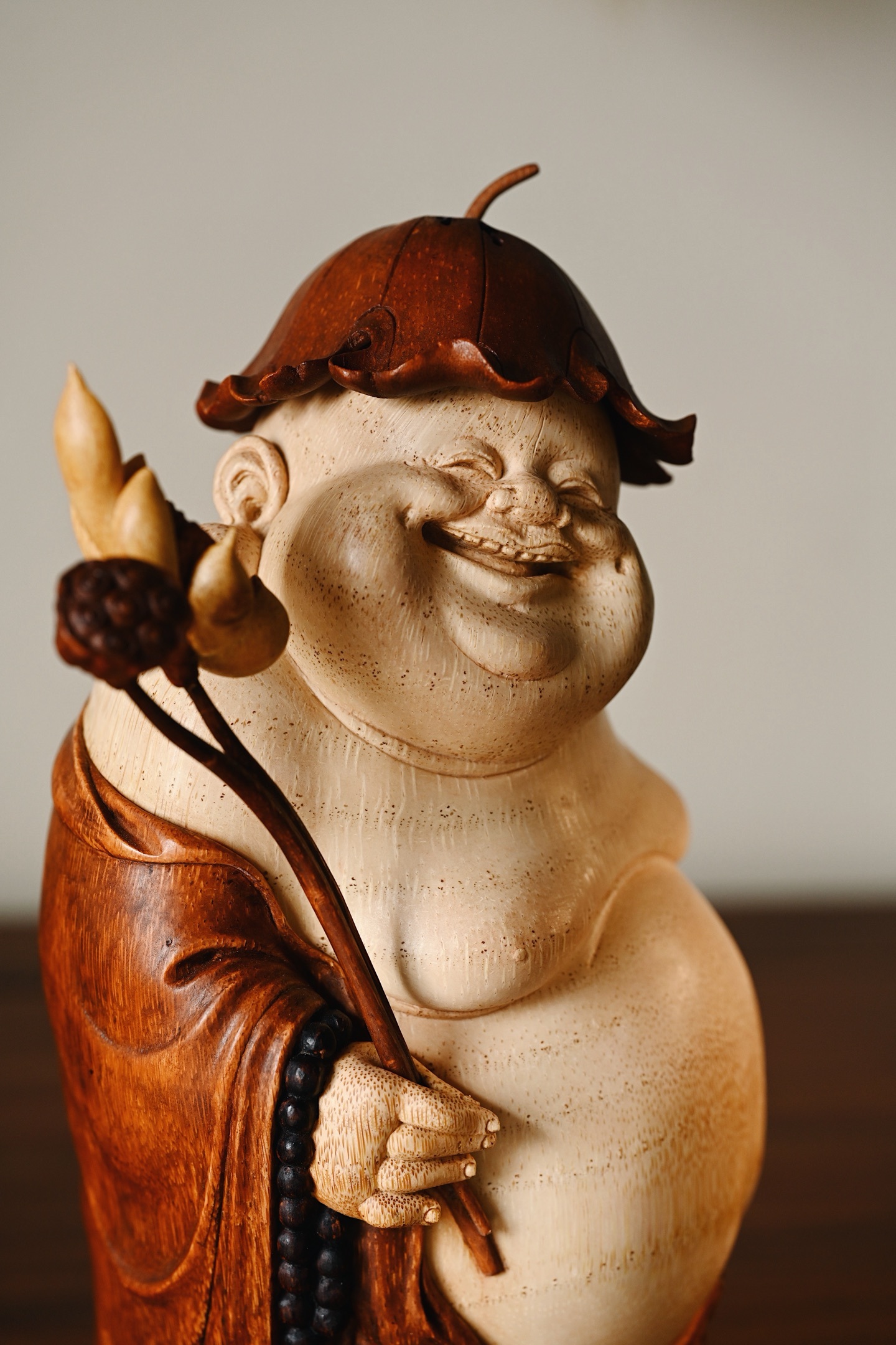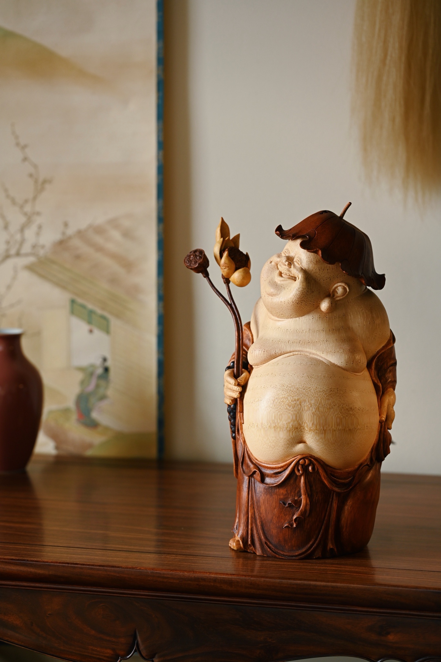 竹雕仿古 | 一团和气•弥勒佛取材质地温润,刻画简洁流畅、自然娴熟,弥勒佛大耳垂