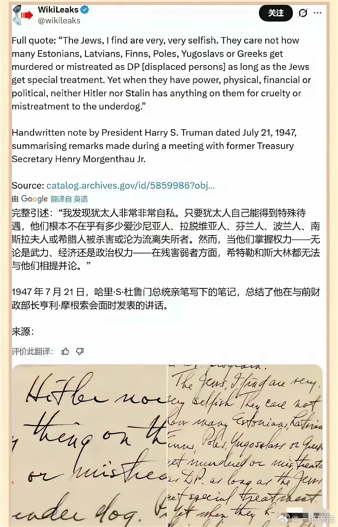 美国前总统杜鲁门在私人日记中对犹太人的评价。犹太人毫无分寸感,对世界事务毫无判断力犹太人非常、非常自私:他们不在乎其他民族难民的苦难,只在乎自己得到特殊待遇当犹太人拥有武力、财力或政治权力时,在残忍与欺凌弱者上,希特勒、斯大林都比不上他们。任何事情都有因果,世上没有无缘无故的爱恨,也没有无缘无故的迁徙流浪。