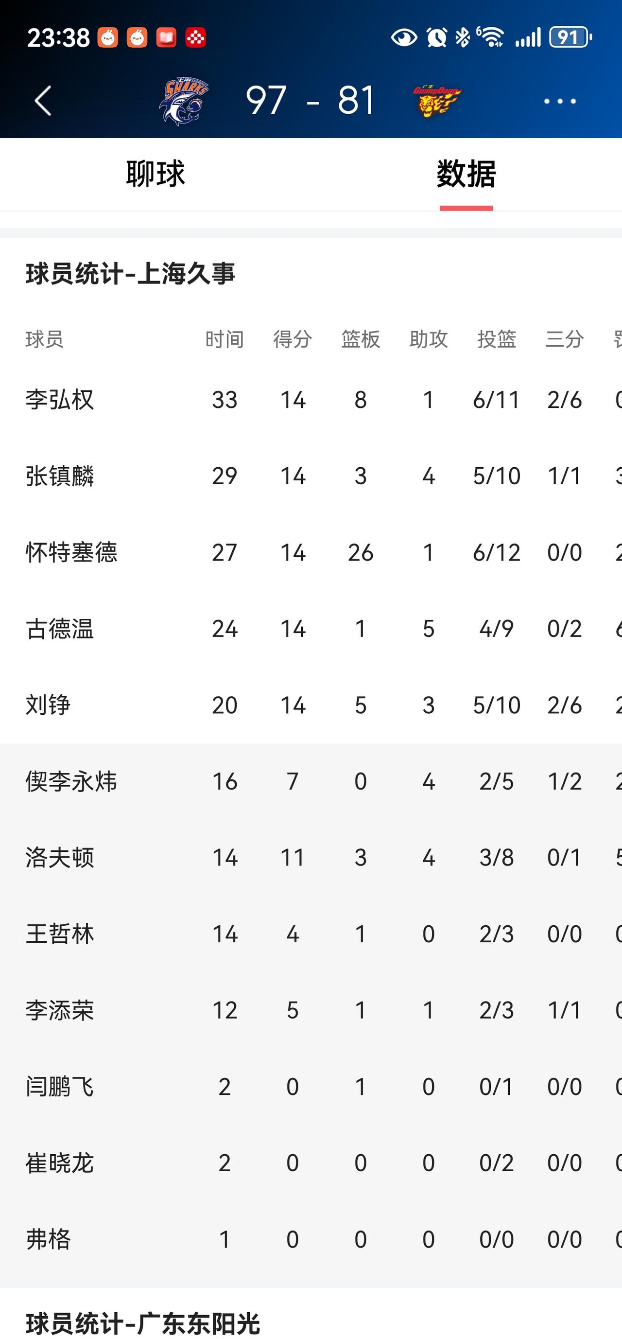 奇事!7人都是14分!3月23日,上海久事97-81广东东阳光,上海队先发5人,