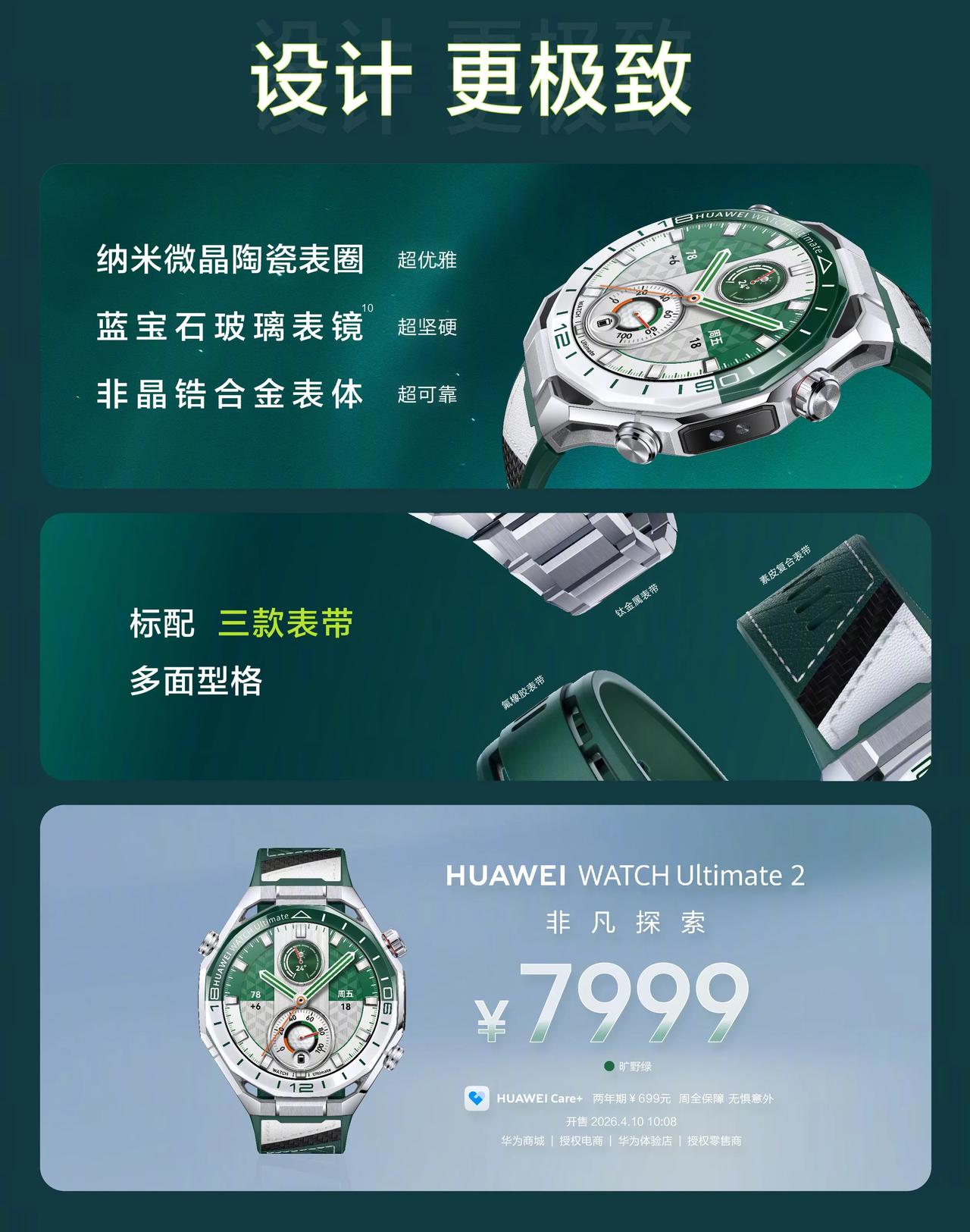真不愧是华为全能表王,华为WATCH Ultimate 2 非凡探索旷野绿带来更加专业表现,重新定义了高尔夫智能手表。 对于很多高端人士来说,高尔夫运动不仅是热爱更是身份彰显需求,而最新上市的华为WATCH Ultimate 2非凡探索旷野绿售价7999元,集专业功能与美学设计于一体,为追求精湛球技与优雅生活的精英用户,带来更加智能、专业的体验。高尔夫运动讲究精准与策略,每一次挥杆、每一步规划都容不得马虎,这一次针对高尔夫运动完成多项核心功能升级,练习场模式新增练习球杆选择、上杆幅度与击球平面记录功能,球场模式实现果岭视图实时旋转、新增多彩 18 洞表圈计分卡功能。 全面升级练习场与球场模式的核心功能,助力从小白到专业进阶。同时还在球场模式下,新增果岭旗杆自定义功能、新增多彩18洞表圈计分卡,以专业能力的升级助力用户提升,让用户的每一挥杆目标有方向,击球有策略,为高尔夫爱好者带来前所未有的智能体验。当然了,华为WATCH Ultimate 2 非凡探索旷野绿还支持更全面更专业的健康管理功能,可以来说是名副其实的全能表王。华为第二代高尔夫手表正式发布