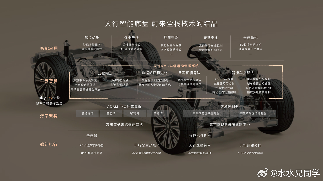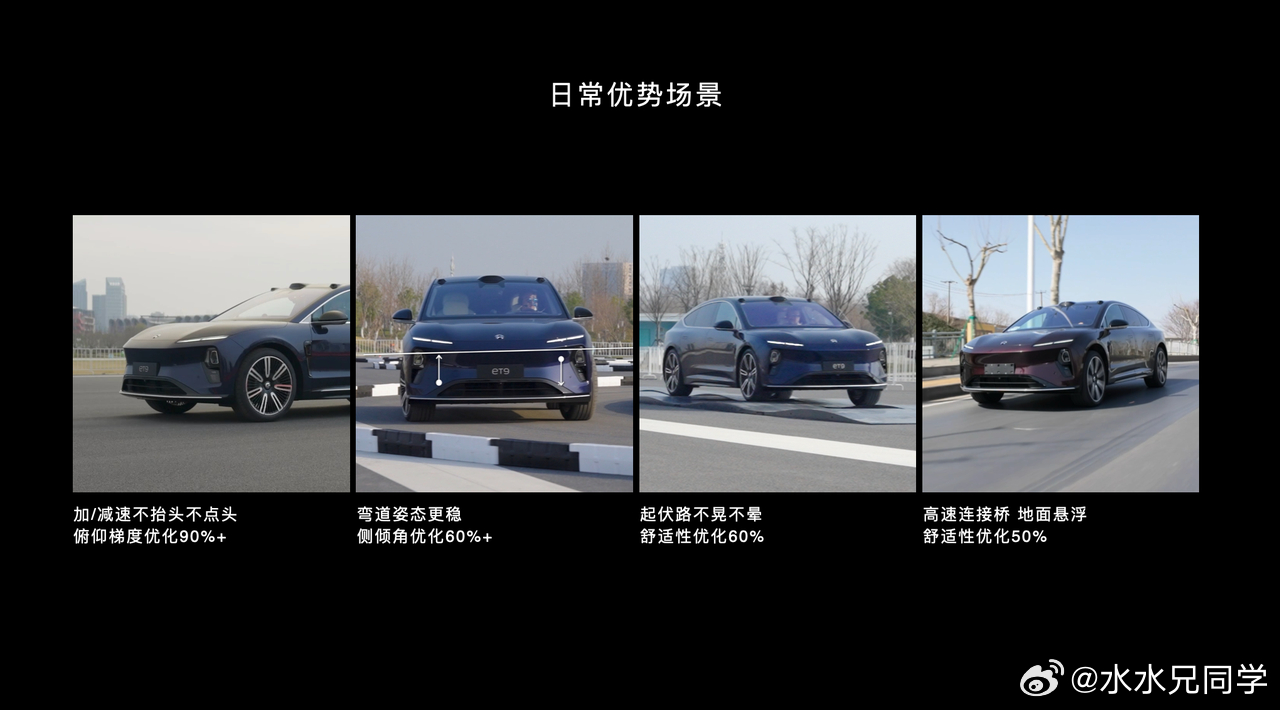 有些是分布式主动底盘,蔚来采用的是集成式主动底盘,虽然都叫做主动底盘,但是实际上内部的响应仍然有巨大的区别。