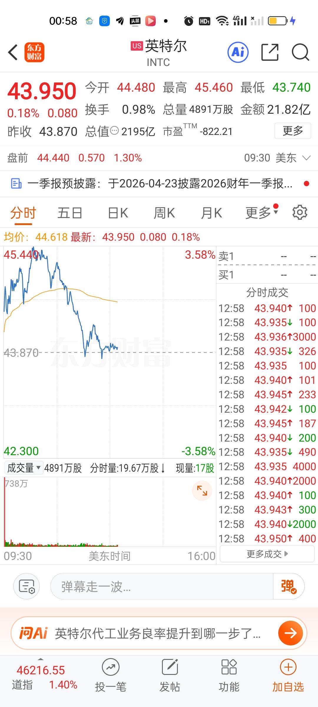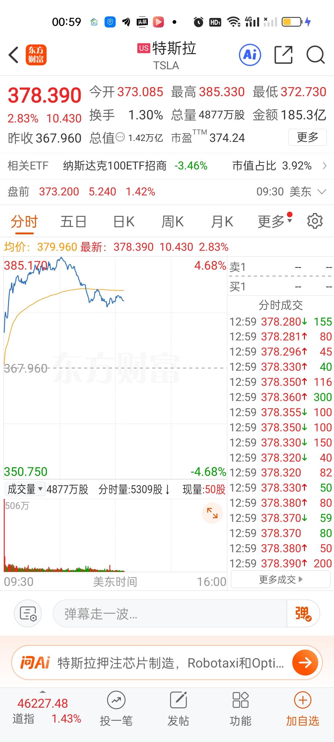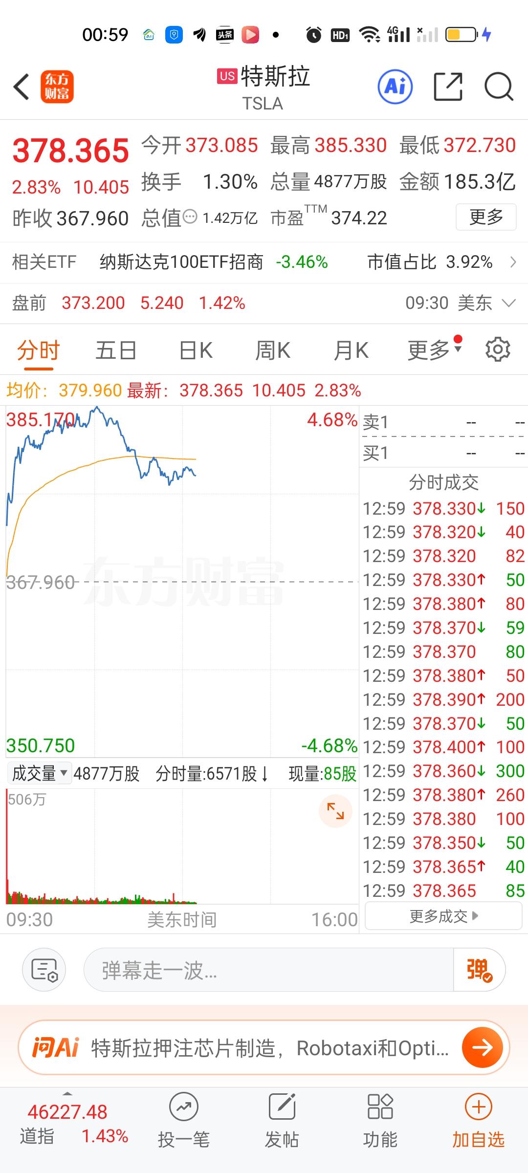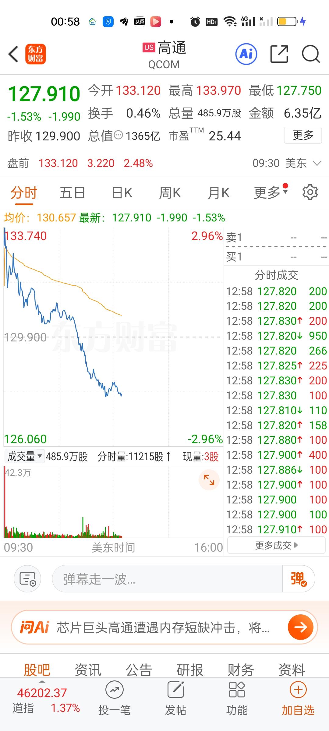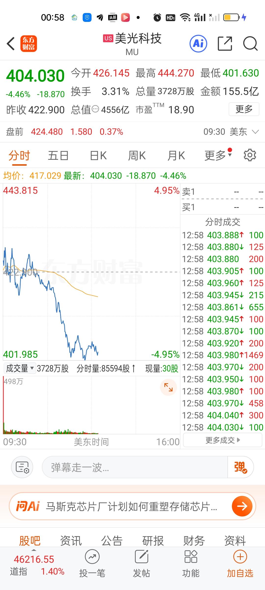 这才盘中,情况开始变得不妙起来。美股存储芯片板块核心个股开始集体跳水,英特尔,AMD,高通,英伟达,特斯拉也开始跳水。情况不太理想。现在道指,纳指和标普500也跳的挺厉害,不知道能不能坚持到收盘啊,就怕还没收盘涨幅就跌没了。希望下半夜给力一点了!
