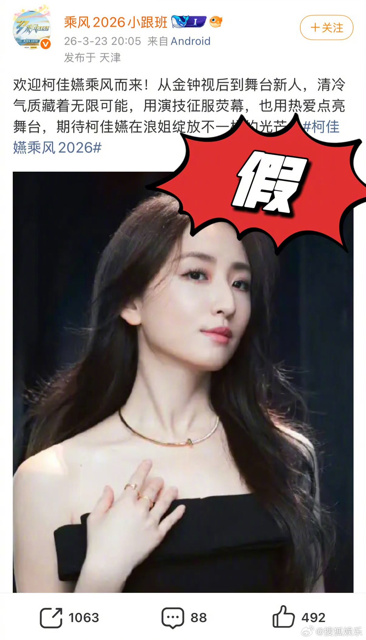 柯佳嬿否认将参加浪姐 柯佳嬿本人发动态否认参加《乘风2026》,表示接下来要进组拍新电影了。