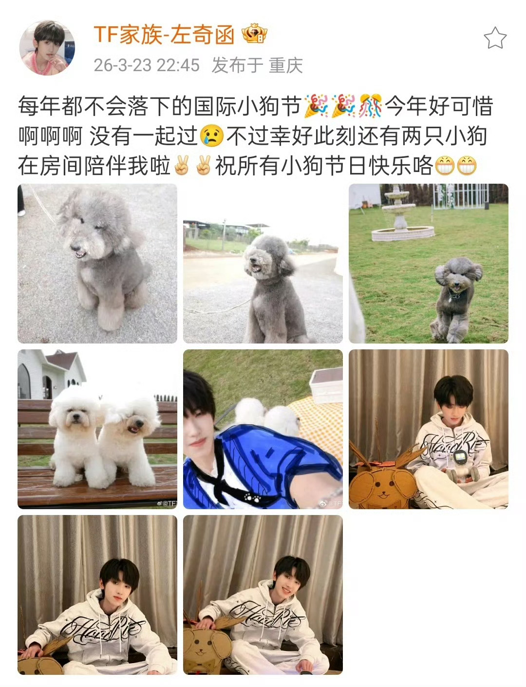 左奇函两只小狗一人两狗,岁月静好,左奇函的温柔都要溢出屏幕啦