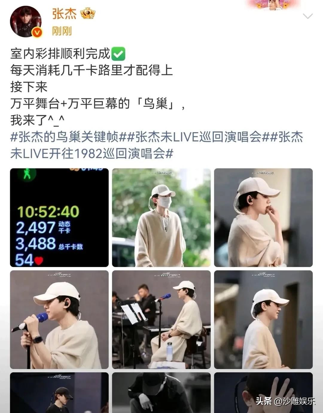 张杰,深夜激动发文! 3月23日深夜,当大多数人早已进入梦乡,张杰却辗转反侧,索性起身发文,字里行间那股“拼了”的劲头,隔着屏幕都能感受到。 他在完成室内彩排后火速更新动态,晒出一组彩排照并配文:“室内彩排顺利完成✅每天消耗几千卡路里才配得上接下来万平舞台+万平巨幕的「鸟巢」,我来了^_^”,一句简单的“我来了”,瞬间点燃了无数粉丝的期待。 先看时间线,这是他官宣「未·LIVE—开往1982」巡回演唱会鸟巢站后,首次公开彩排进度。此前他就将鸟巢站定义为本次巡演的“核心场”,万平舞台搭配万平巨幕的配置,光是筹备就耗时数月,诚意可见一斑。 但就在这紧锣密鼓的关键期,早年与前女友段曦的旧闻突然被翻出,对方重提疑似出轨的过往争议,一度将他拉入舆论漩涡,不少路人也在讨论这场风波会不会影响他的事业与口碑。可这场风波并没有打乱他的节奏,反而让他把更多精力投入到了彩排中。 这次晒出的照片里,一张运动手环截图格外扎眼:当天动态千卡2497,总千卡数3488,高强度训练的痕迹一目了然。将近3500千卡的消耗,对于普通人来说可能是一周的健身量,而他却只是一天彩排的“常规操作”。 有网友直接辣评:“这哪是彩排,分明是铁人三项备战。”更有粉丝心疼地调侃:“张杰,你对自己是不是太狠了点?” 再看后续反响,这场旧闻并未对他造成实质冲击:鸟巢站门票依旧迅速售罄,商务合作与演出邀约稳定,路人缘也靠多年来的作品和顾家形象稳住了阵脚。大家更愿意把目光投向他的专业态度,而非陈年争议。 有网友直言:“出轨的瓜吃不动了,但张杰的舞台是真炸裂,我愿意为实力买单。”还有人表示:“这么多年过去了,作品才是硬通货,纠结过去有什么意义?” 如今他用满格状态回应期待,也让这场万众瞩目的鸟巢演唱会,成了他用实力说话的最好证明。从深夜无法入眠的激动发文,到一次次刷新身体极限的彩排,张杰用实际行动告诉所有人:真正的专业,是把所有注意力都放在舞台上,而不是被外界的声音牵着走。 说到底,娱乐圈从来不缺话题,缺的是面对话题时的定力。张杰这次的操作堪称教科书级别:争议来了,不回应、不解释、不卖惨,转头就用近乎“自虐”式的排练强度刷屏。这一波“用实力打脸”的节奏,谁看了不说一句专业? 眼下鸟巢演唱会进入倒计时,张杰已经把期待值拉满。网友的评论也说明了一切:“期待鸟巢,期待他用歌声证明自己。” 这一次,他的“拼了”不是为了回应任何人,而是为了对得起那个万平舞台,也对得起一直等他的歌迷。
