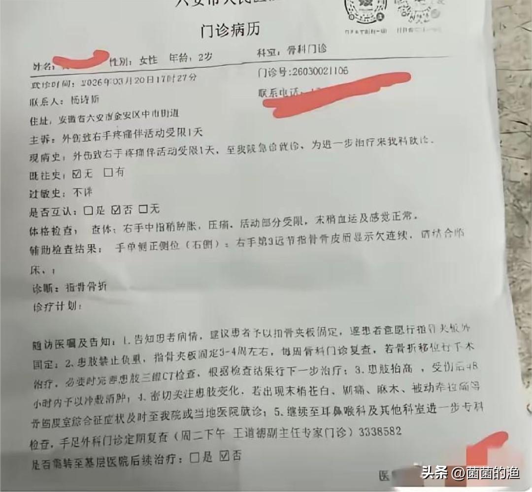 两岁女童因抢玩具被掌掴至骨折,母亲放话“绝不和解”:有些底线,给多少钱都不能退 安徽六安的一家饭店里,监控录下的一幕,看得人心里发紧,拳头硬了。 两个刚会走路的孩子,因为一辆玩具扭扭车起了争执。这本是孩子成长中再寻常不过的小摩擦——前一秒可能还在抢玩具,后一秒就能忘得一干二净。可这一次,原本简单的童年剧本,被一个成年人的失控彻底撕碎了。 面对另一个两岁女童的“护食”举动,一名成年女子的情绪瞬间决堤。她没有像正常家长那样拉开孩子、讲道理,而是对着那个还没她腿高、毫无还手之力的幼童,挥起了巴掌。 掌掴面部、猛击手部、推搡在地……监控里,孩子的哭声撕心裂肺,本能地想往妈妈怀里躲,却被再次拽住不放。 结局令人心碎:孩子右手中指骨折、耳膜充血、多处软组织挫伤。小小的身体上,留下了原本不该属于她的伤痕。 更让人窒息的是这位母亲的态度。为了保住这个孩子,她曾卧床保胎一年,视若珍宝。看着满身是伤的女儿,她没有流一滴泪,只留下一句狠话:“绝不和解,一分钱都不要,我就要她付出代价!” 别把“护犊子”当成动手的借口 事情发酵后,总有一些声音在说:“当妈的看到自己孩子受委屈,急眼了能理解。” 但这根本不是“急眼”,这是以大欺小。 对方才两岁,你的孩子也是两岁。孩子之间的抓挠推搡,是他们探索世界、学习社交边界的本能,谈不上半点“恶意”。作为一个心智健全的成年人,你仗着体型和力量的绝对优势,去碾压一个连话都说不利索的幼儿,这不叫保护,这叫作恶。 如果你真的爱孩子,应该做的是蹲下来告诉他:“玩具要分享,我们可以轮流玩。”而不是当着他的面,用最狰狞的姿态,把一个比他更弱小的同类打进医院。 你以为你在给孩子“撑腰”,其实你是在给孩子做最坏的示范:只要我拳头大、只要我够凶,规则就是废纸,我就可以随意伤害别人。 这种扭曲的价值观,比丢了那个玩具车,可怕一万倍。 为什么全网都在力挺“绝不和解”? 这位妈妈的“硬刚”,不仅是为了自己,更是为了所有孩子。 在太多类似的纠纷里,我们听惯了“算了吧”、“孩子小不懂事”、“赔点钱私了”。这种和稀泥的态度,只会让坏觉得作恶成本极低,变本加厉。 但这一次,这位母亲拒绝了。因为她清楚,有些伤害是钱弥补不了的。 孩子深夜惊醒时的颤抖、看见陌生人就躲的恐惧,这些心理阴影要伴随多久?如果这次拿了钱和解,是不是等于告诉施暴者:只要有钱,别人的孩子就可以随便打? 拒绝和解,是在守住社会的底线:成年人的拳头,永远不能挥向孩子的脸庞。 情绪稳定,是父母最高级的修养 这起事件里,最无辜的是被打的孩子,但最可悲的,其实是施暴者自己的孩子。 他在旁边亲眼目睹了母亲最失控、最丑陋的一面。他学到的不是“如何解决问题”,而是“如何用暴力发泄”。 我们常说,父母是孩子的镜子。你希望孩子将来成为一个温文尔雅、讲道理的人,还是一个情绪失控、崇尚暴力的“巨婴”?孩子的教养,藏在父母的每一次情绪管理里。 目前,警方已经介入,施暴者已被传唤。无论她是什么身份,哪怕是老师、哪怕家境优渥,在法律面前,没有特权。 我们支持这位母亲的决定。有些底线,一旦触碰,就没有回头的余地。 别让成人的戾气,毁了孩子的童年;也别让所谓的“爱”,变成挥向无辜者的巴掌!