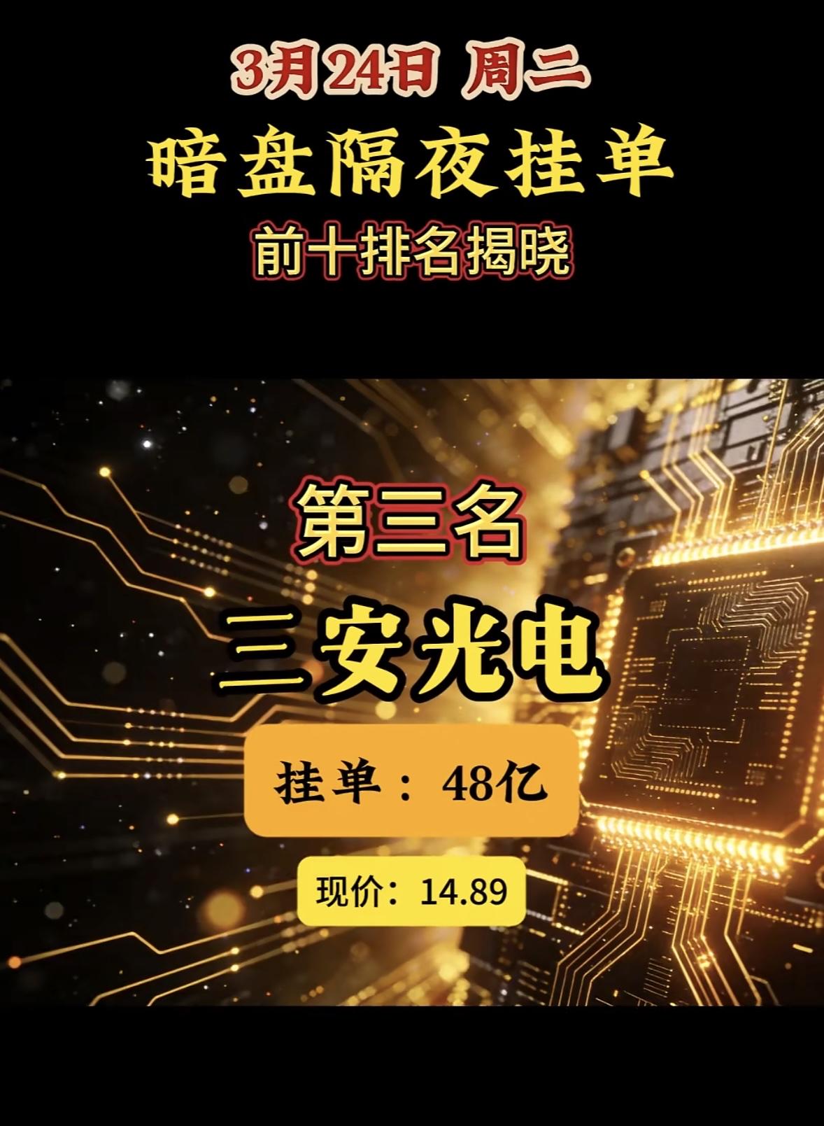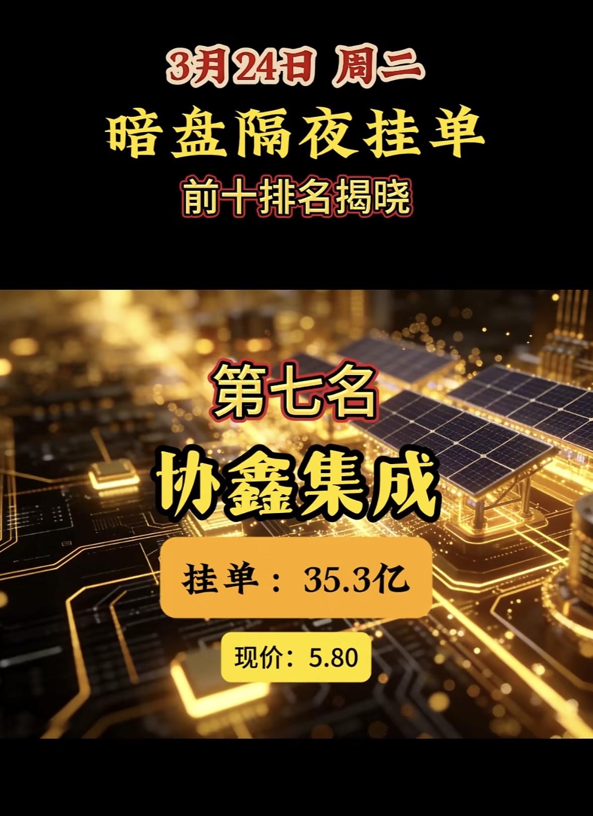 3月24日暗盘隔夜挂单排行榜出炉 昨天3月23日暗盘隔夜挂单的情况很值得说道。