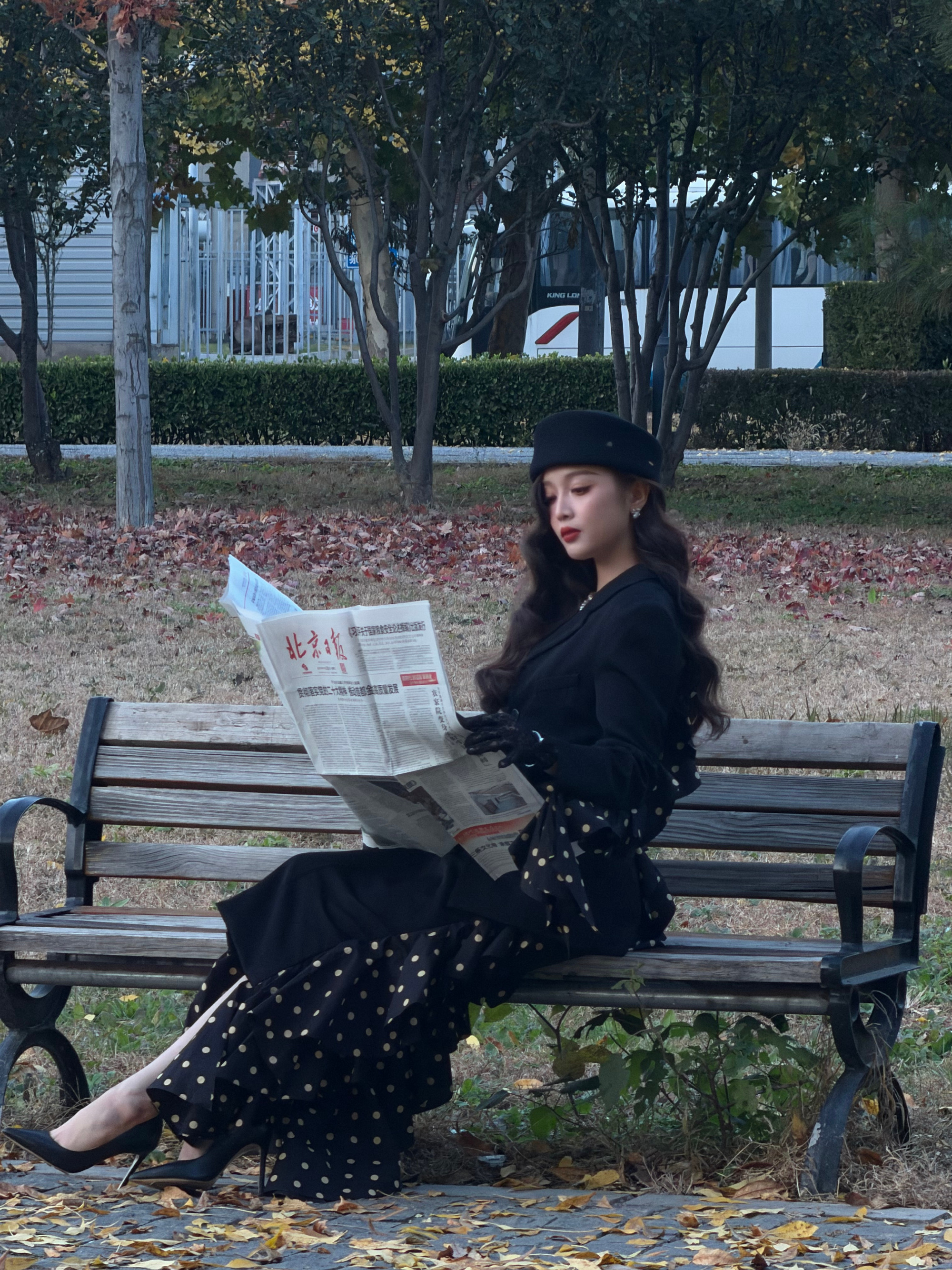 高圆圆双腿并拢,搭配红色鱼嘴高跟鞋,明艳又大气,气质清新得像出水芙蓉,一眼就难忘