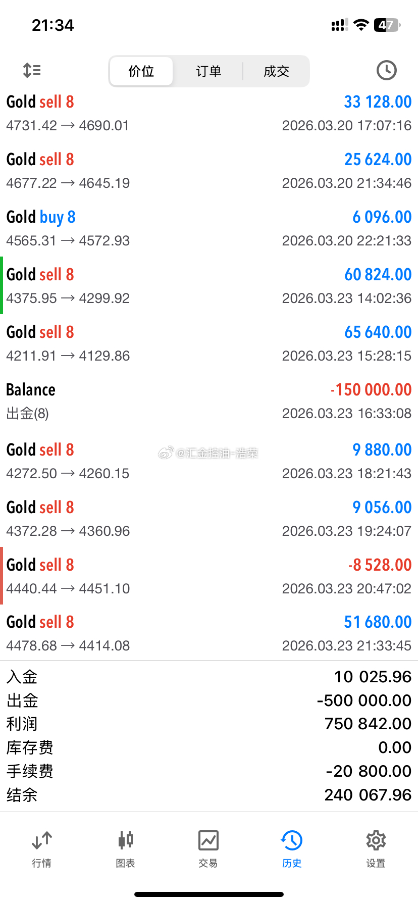 2026.3.23日操作6单,5胜1负!共收割2520点利润。心就是一盏灯,心的能量决定了明暗,心若计较,处处都是怨言,心若放宽,时时都是祥和 。今天到此收工,晚安。黄金金价晚安
