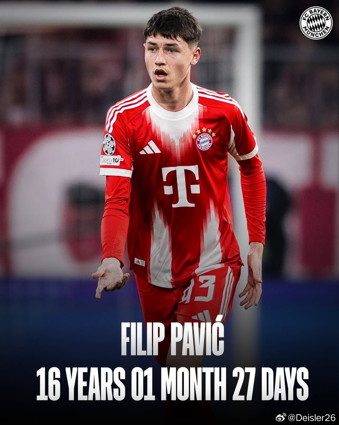 随着奥夫利和帕维奇在欧冠比赛出场,拜仁本赛季自己培养球员实现首秀的人数已经达到8