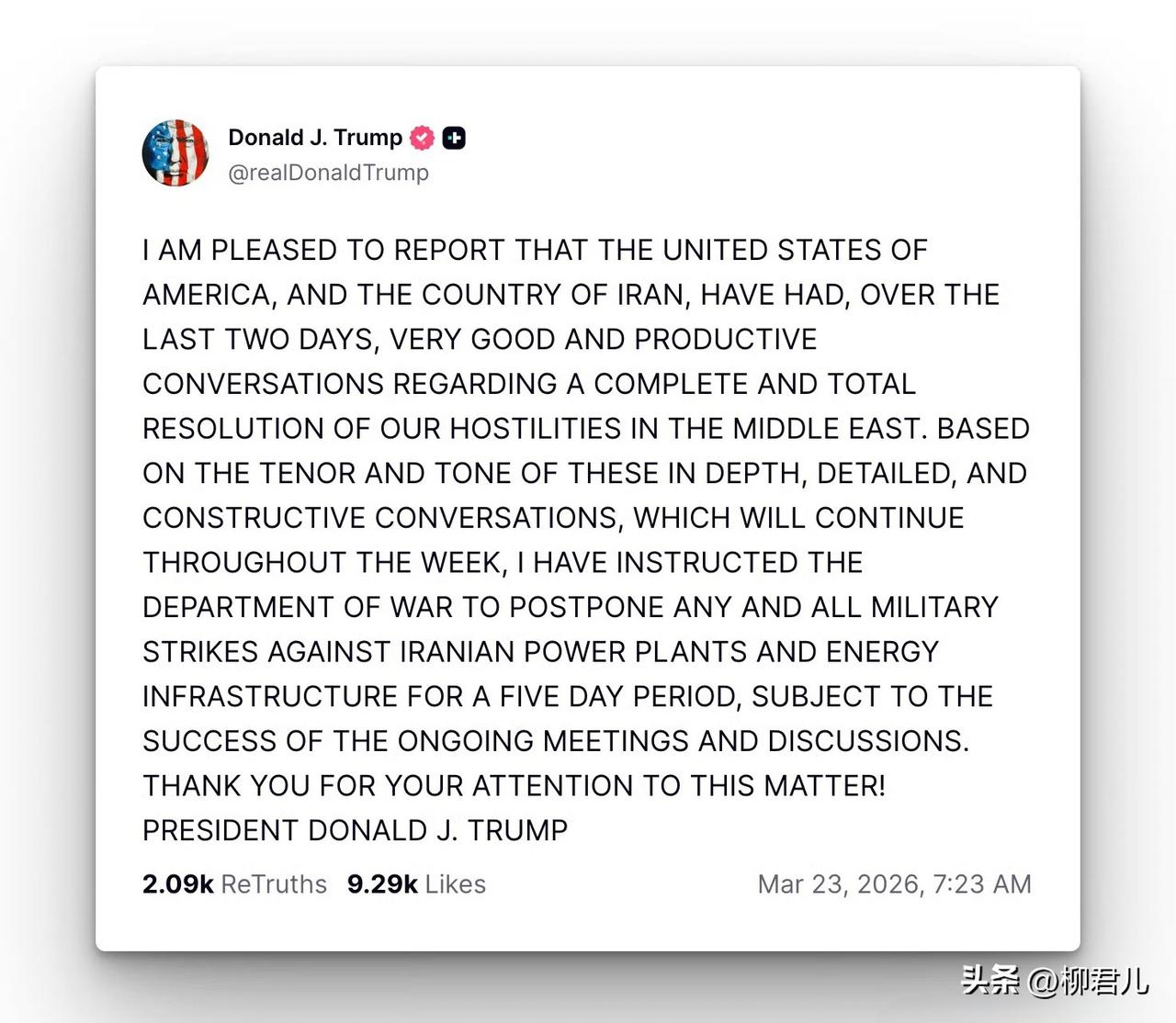 伊朗外交部“打脸”特朗普 特朗普在社交平台发文称,美国和伊朗在过去两天里,进行了非常良好和富有成效的对话,基于这些深入、详细且建设性对话的基调和氛围「对话将在本周持续进行」,他已指示暂停对伊朗发电厂和能源基础设施的一切军事打击,为期五天。 伊朗外交部随后表示,伊朗与美国之间既没有直接接触,也没有通过中间人进行沟通,在获悉伊朗将打击西亚地区所有发电厂后,特朗普选择退缩。伊朗将继续做出回应并捍卫国家,指责特朗普的相关言论为心理战,只是在拖延时间。 众所周知,特朗普说话真真假假,喜欢对事情进行夸大其词的描述,从他嘴巴里说的话根本不能相信。 另外,回顾白宫就伊朗战争问题编织的一系列“自相矛盾”的谎言,其实已经说明问题。 1、特朗普曾在社交平台发文称「已经彻底摧毁伊朗100%的军事能力」,而伊朗现在却还能发起军事打击。 2、特朗普政府曾称对伊朗的战事「已基本结束」,但现在又从世界各地调集军队前往中东。 3、特朗普政府曾说美军拥有「近乎无限」的弹药供应,但五角大楼却又要从韩国调动导弹防御系统运往中东。