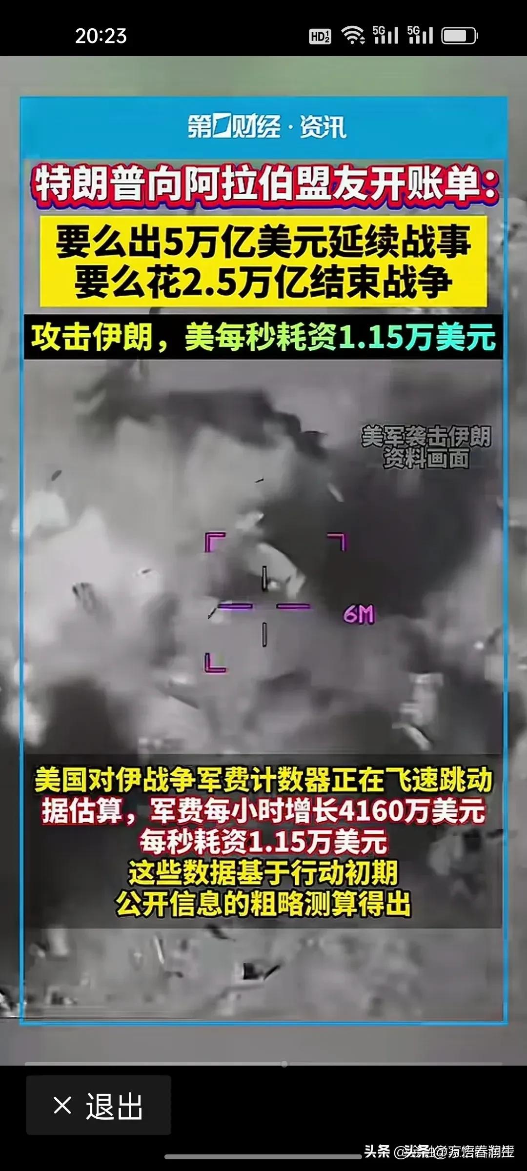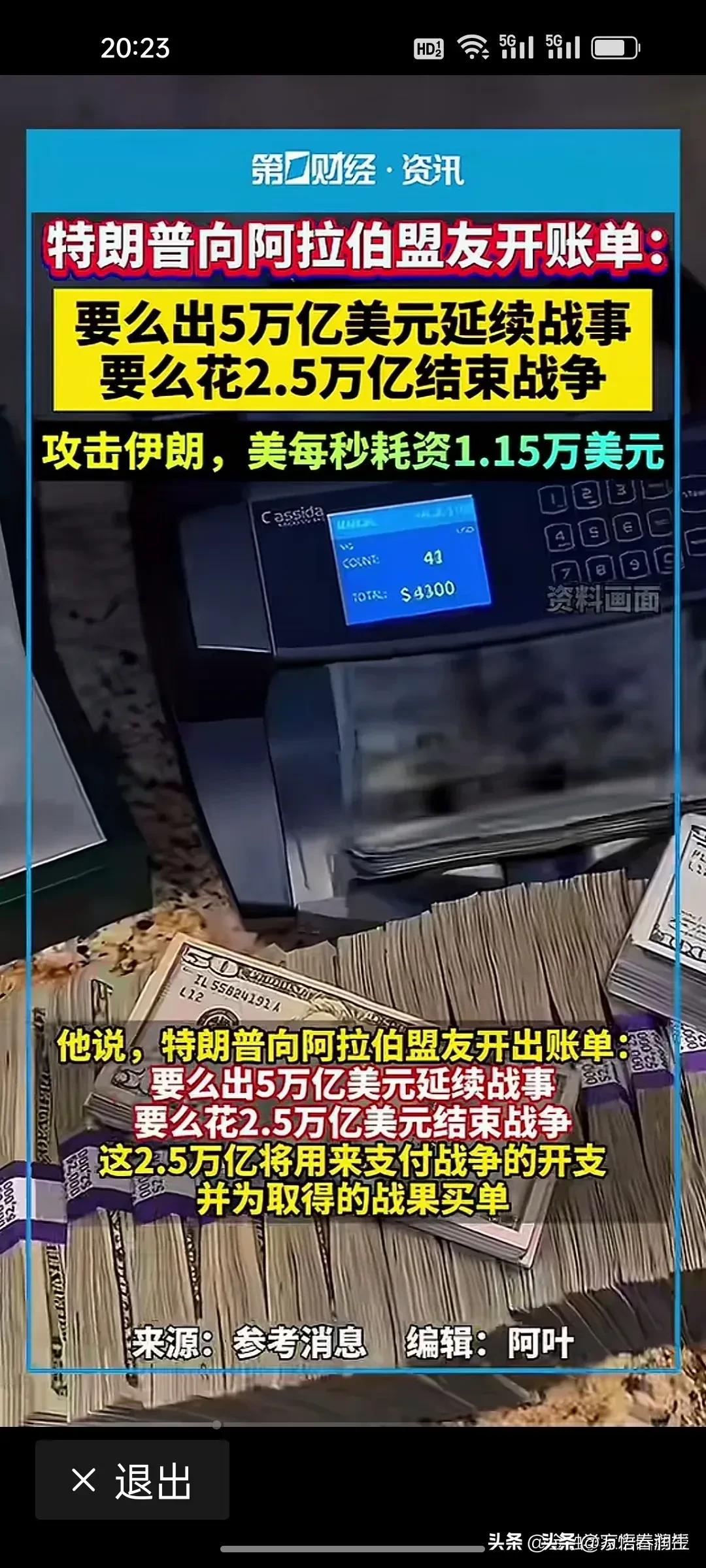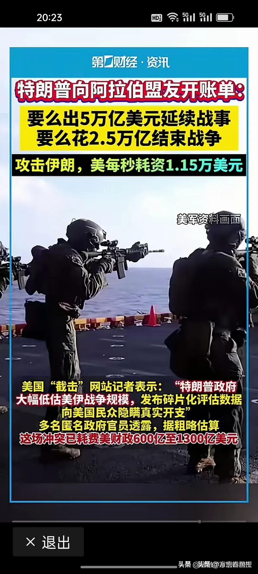 特朗普开出续战价止战价 续战售价——5万亿, 止战售价——2.5万亿。 让中东国家买单。 打不过伊朗,反手敲诈阿拉伯王爷! 不管打不打,你们中东土豪国家都要掏钱买单。 伊朗石油价格 美国打伊朗让俄罗斯成了最大赢家吗美军攻打伊朗 美国对伊朗空袭 伊朗战况 伊朗怒批美国 美国要打伊朗 美国入侵伊朗