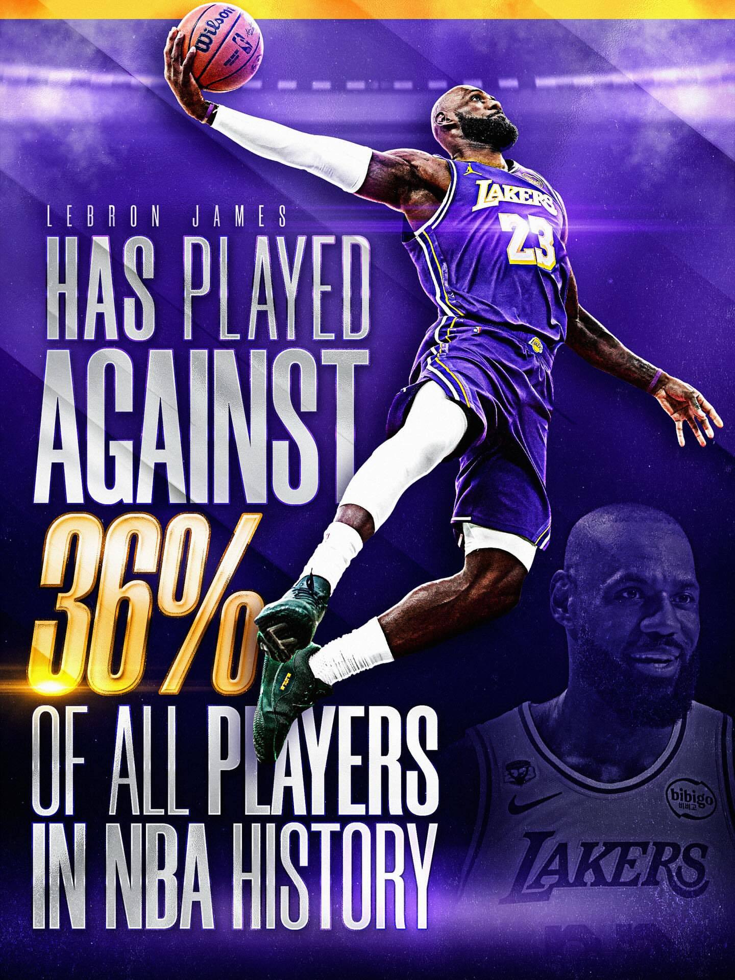 NBA官方统计显示老詹已经和NBA成立以来36%的球员交过手了,再早一赛季进NBA都能和麦扣碰一碰了。詹姆斯