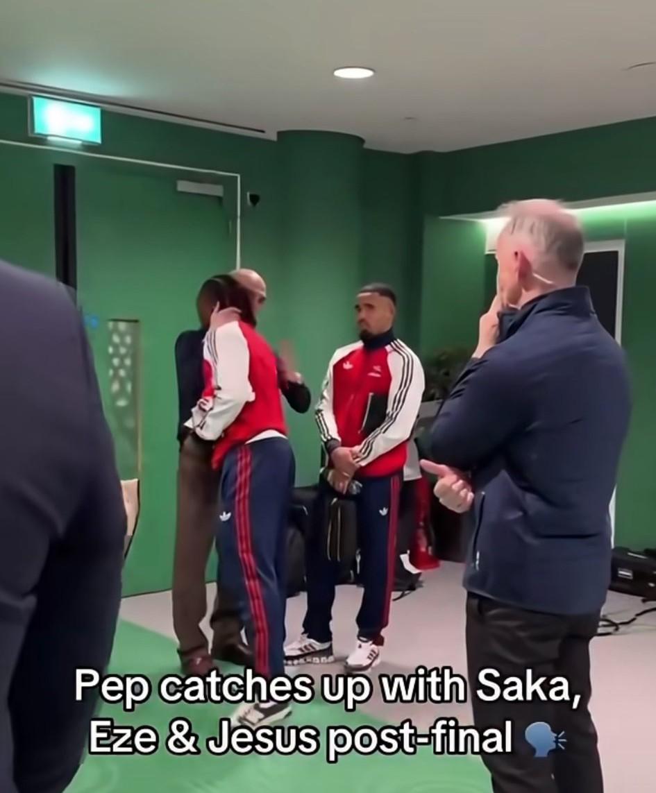 英联杯决赛赛后在球员通道里面“暖心”的一幕:瓜迪奥拉和阿森纳球员萨卡、热苏斯等球员亲切的交谈。瓜帅可能是在安慰这几位他昔日弟子:“这次输球不算什么,你们本赛季最重要的是拿欧冠。在欧冠给我好好表现,我明年到其他球队再把你们给高薪挖过来”…… 话说回来,本场英联杯决赛阿森纳部分球员的表现真的让人看不太懂。就比如萨卡,明显没有以前积极了;中场休息的时候几个替补路过还笑嘻嘻和哈兰德打招呼。真不知道阿尔特塔调教的是支什么球队?