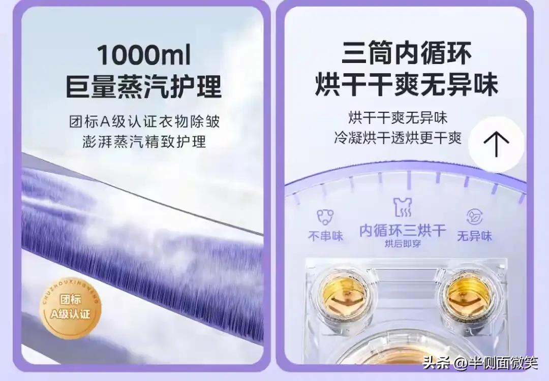热泵烘干:低温柔烘,衣服干得快还不变形 最绝的就是热泵烘干功能!回南天没有太阳,它就成了 “移动小太阳”。低温热泵技术,不像普通烘干那样高温伤衣,不管是羊毛大衣、真丝衬衫,还是纯棉 T 恤,烘干后都蓬松柔软,完全不会发硬、变形。 以前晾一周都干不透的厚外套,放进机器里,几个小时就能拿出来直接穿,还带着淡淡的清香,再也不用等太阳 “赏脸”。 分区洗烘:内衣外套同洗同烘,效率直接拉满 这绝对是懒人福音!分区洗烘设计,能同时满足不同衣物的洗护需求:一边洗内衣、袜子,一边烘外套、床单,不用分两次操作,一次就能搞定全家的衣物。 早上出门前把脏衣服放进去,下班回家就能拿到干爽洁净的衣服,不管是日常通勤,还是周末大扫除,都能高效适配,彻底解放双手。 4. 蒸发器自清洁:告别二次污染,省心又省钱 以前用烘干设备,最头疼的就是蒸发器积毛屑,不仅影响烘干效果,还会造成二次污染,定期拆机清理不仅麻烦,还要花不少钱。 美的这款的蒸发器自清洁功能,能自动清理毛屑和污垢,从根源上避免二次污染,不用手动拆机,省了高额的维护成本,用着更安心。