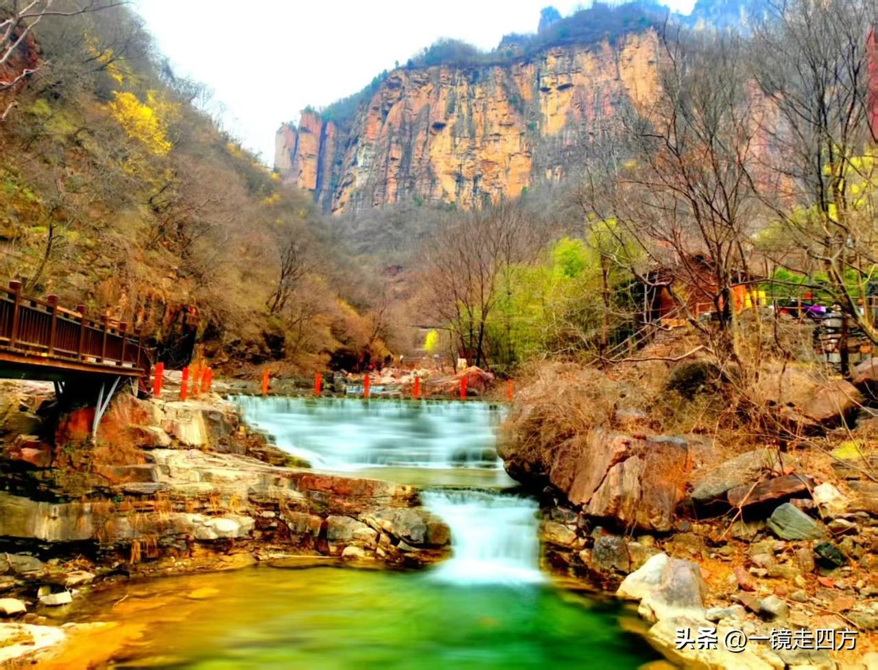 太行山八里沟位于河南省新乡市辉县市上八里镇,地处南太行南麓豫晋交界,总面积109平方公里,由八里沟主景区、九莲山、天界山三大片区组成,有“北方水世界”和“太行山水精华”之称,是国家5A级景区、国家地质公园、国家级猕猴保护区。这里的标志性景观是被誉为“太行第一瀑”的天河瀑布落差达到157米,四级叠瀑错落分布,瀑水遇红岩奇石,或垂练悬空,或分流成帘,或漫滩成溪,瀑布后有200米水帘洞可穿行,水雾裹着轰鸣,抬眼可见叠瀑层林相映,峡谷间还有百潭百瀑串连成线,形成层层叠叠的瀑布群落,从桃花湾的轻柔叠瀑,到红石河沿线的细碎流瀑,大小数十处飞泉倾泻而下,尽显南太行“北方水世界”的灵动壮阔。作为国家级猕猴自然保护区,山林间栖息着成群野生太行猕猴,它们机敏灵动,或攀援于崖壁林木,或嬉戏于溪涧旁,为雄奇山水增添勃勃生机,是景区一道鲜活灵动的风景线。(图文:金鹰)